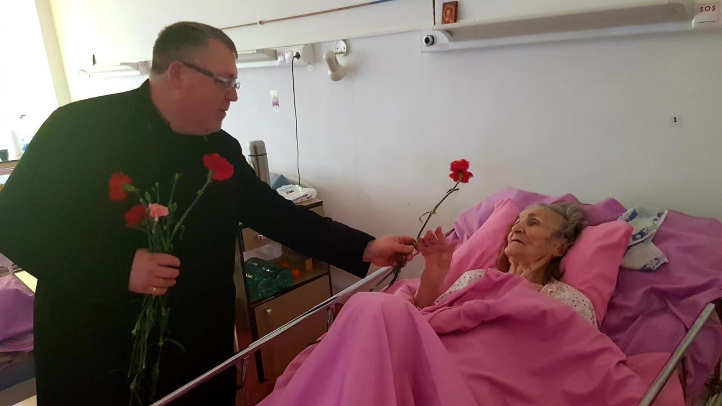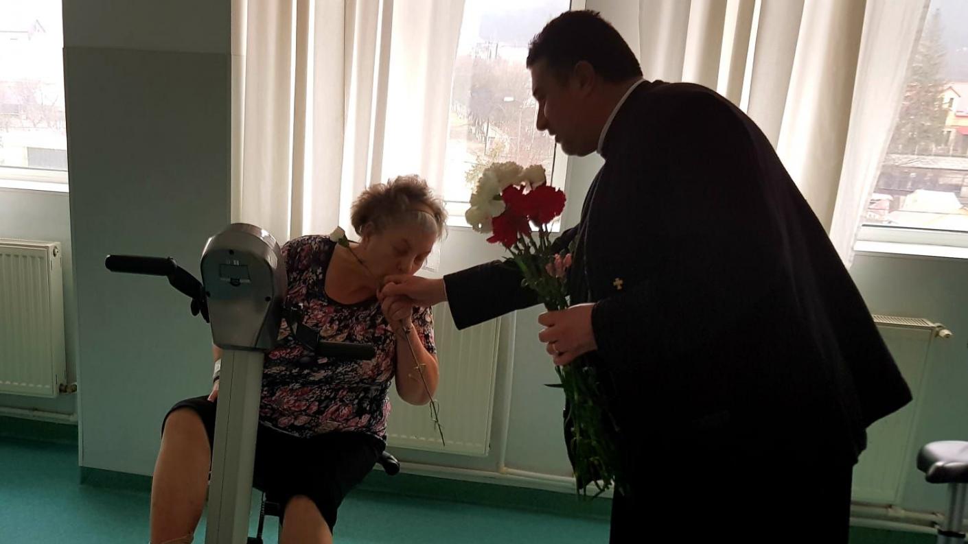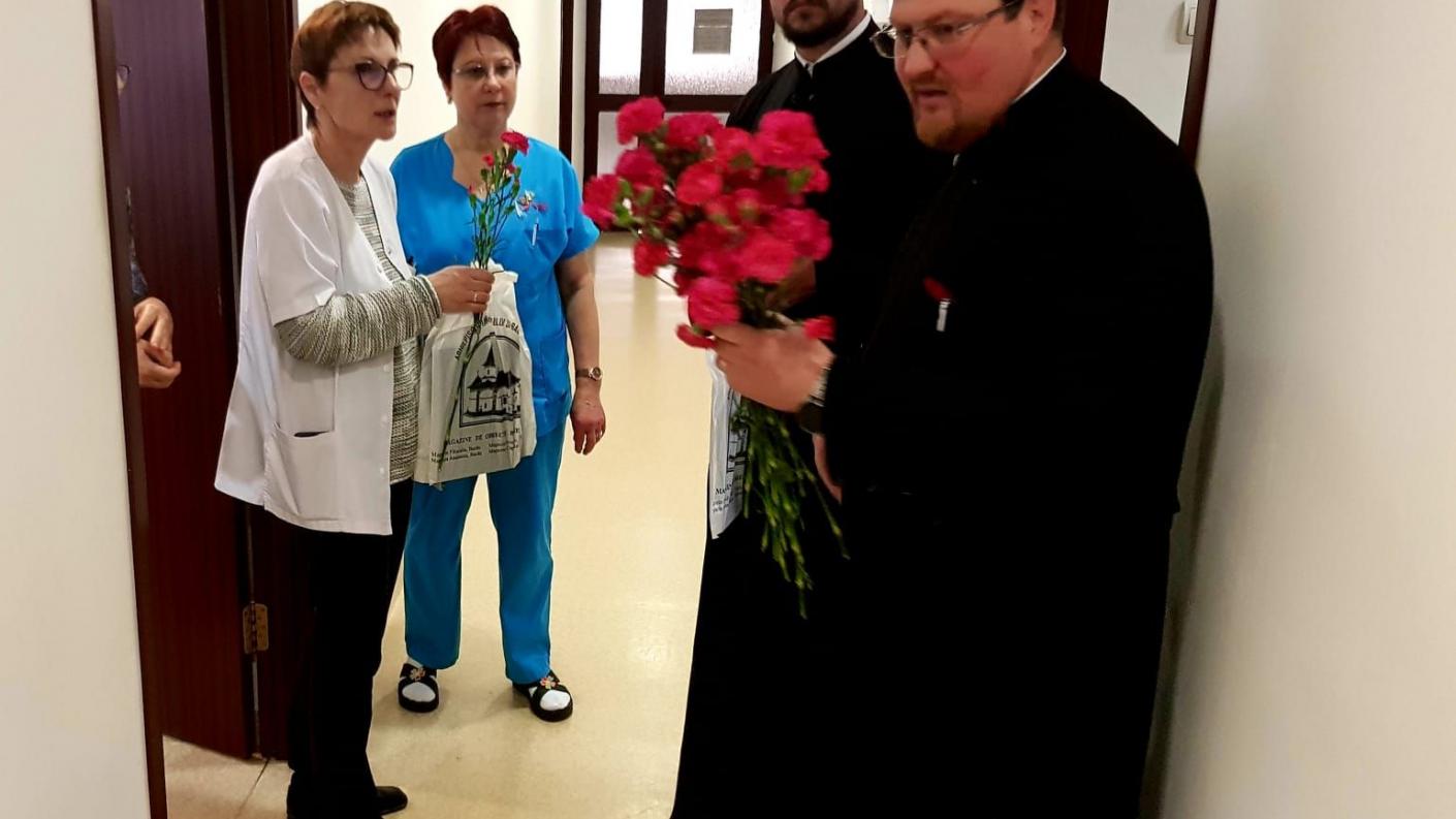 După săvârșirea slujbelor, preoții au mers prin saloanele spitalului și au oferit flori și iconițe tuturor cadrelor medicale și pacientelor.