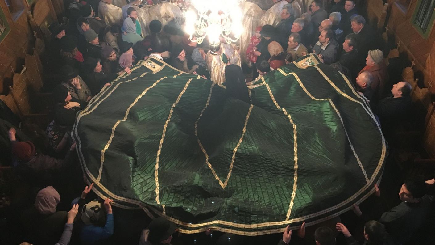 Înaltpreasfințitul Părinte Arhiepiscop Ioachim, la finalul slujbei, acoperindu-le capetele smerite cu mantia sa arhierească, a rostit rugăciuni de alinare și vindecare a suferințelor trupești și sufletești pentru cei aflați în nevoie.