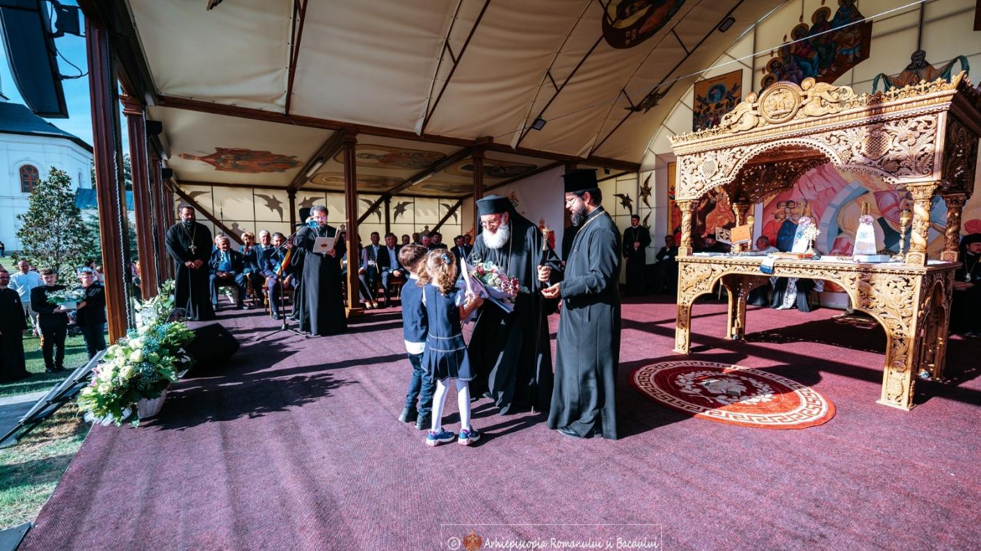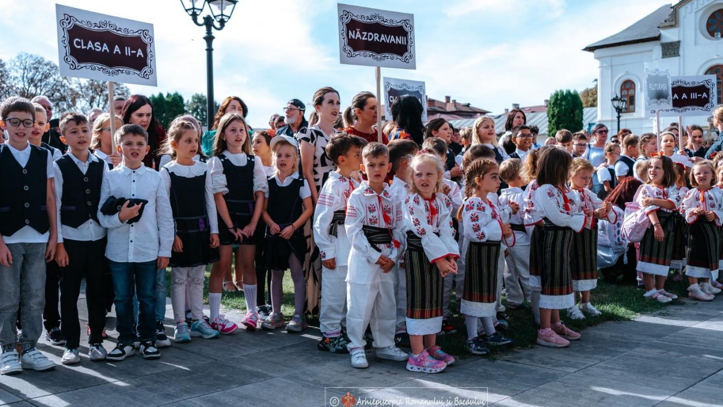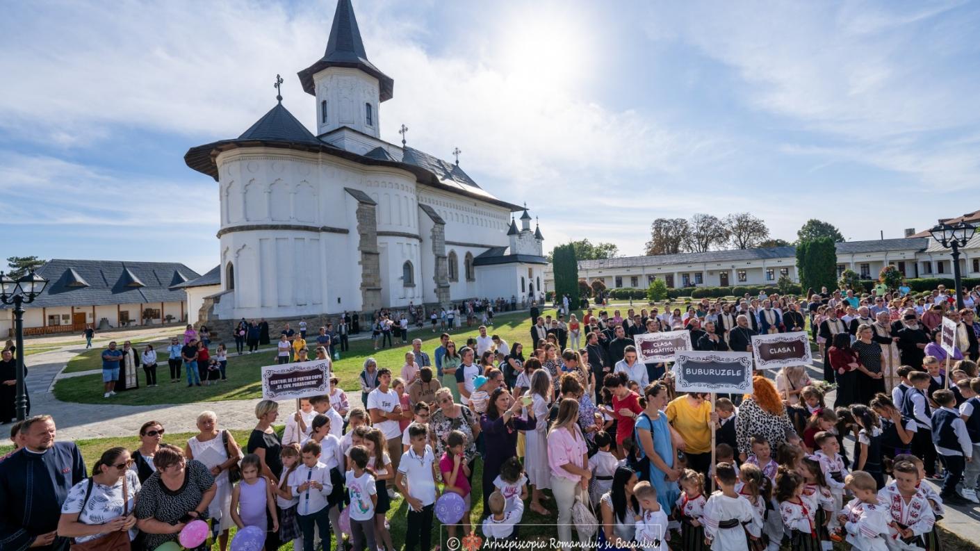 Curtea centrului eparhial de la Roman a fost cuprinsă în după amiaza acestei zile de vocile cristaline ale elevilor Liceului Teologic „Episcop Melchisedec” și de cele ale elevilor Școlii Primare „Mușatinii” din Roman, aceștia din urmă au intonat cu bucurie și entuziasm imnul instituției școlare în semn de mulțumire adusă lui Dumnezeu la începerea anului academic. Ulterior, părintele Valentin Băltoi, consilier eparhial în cadrul Sectorului cultural a transmis cuvinte de bun venit elevilor, părinților și cadrelor didactice prezente, subliniind importanța parteneriatului dintre Școală și Biserică în vederea dezvoltării și creșterii intelectuale a tinerilor:
