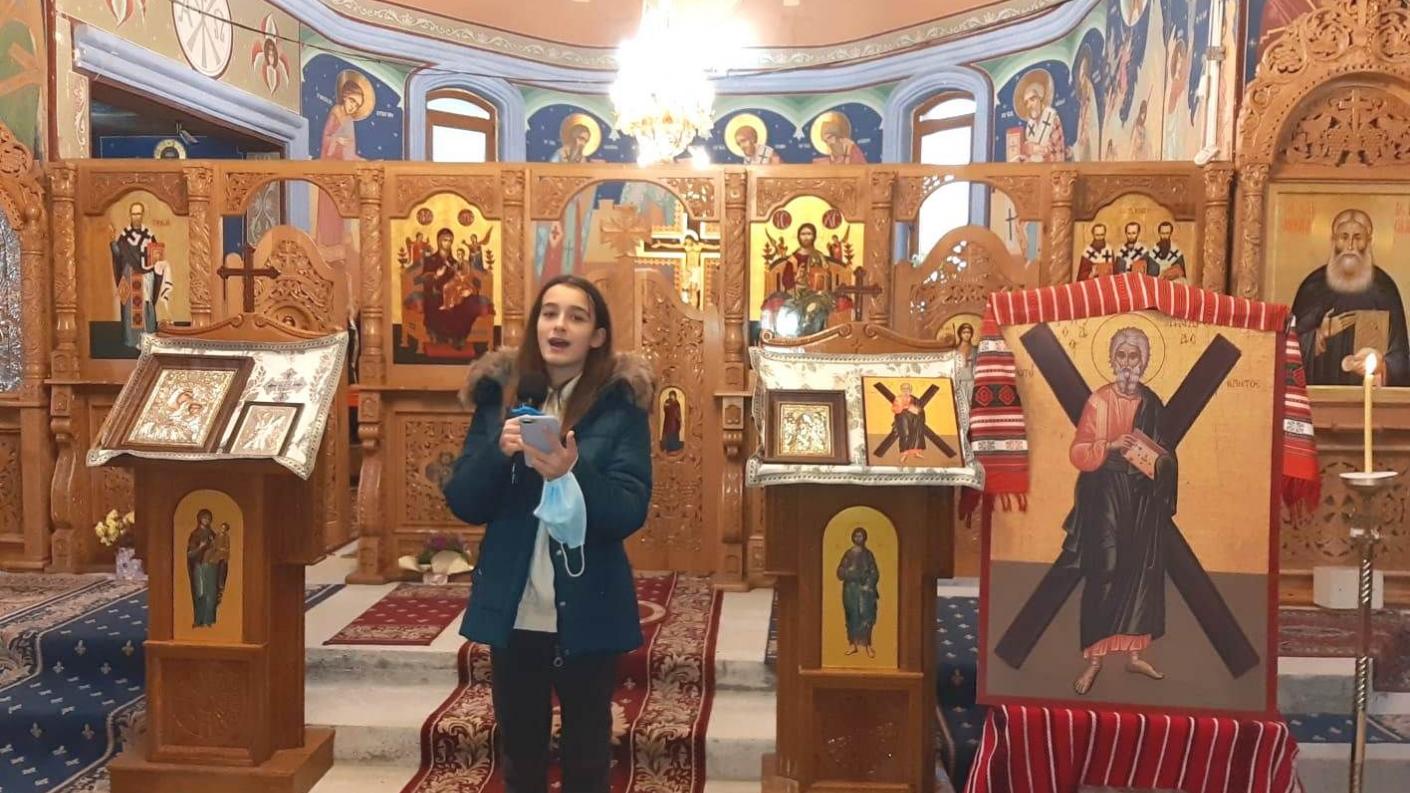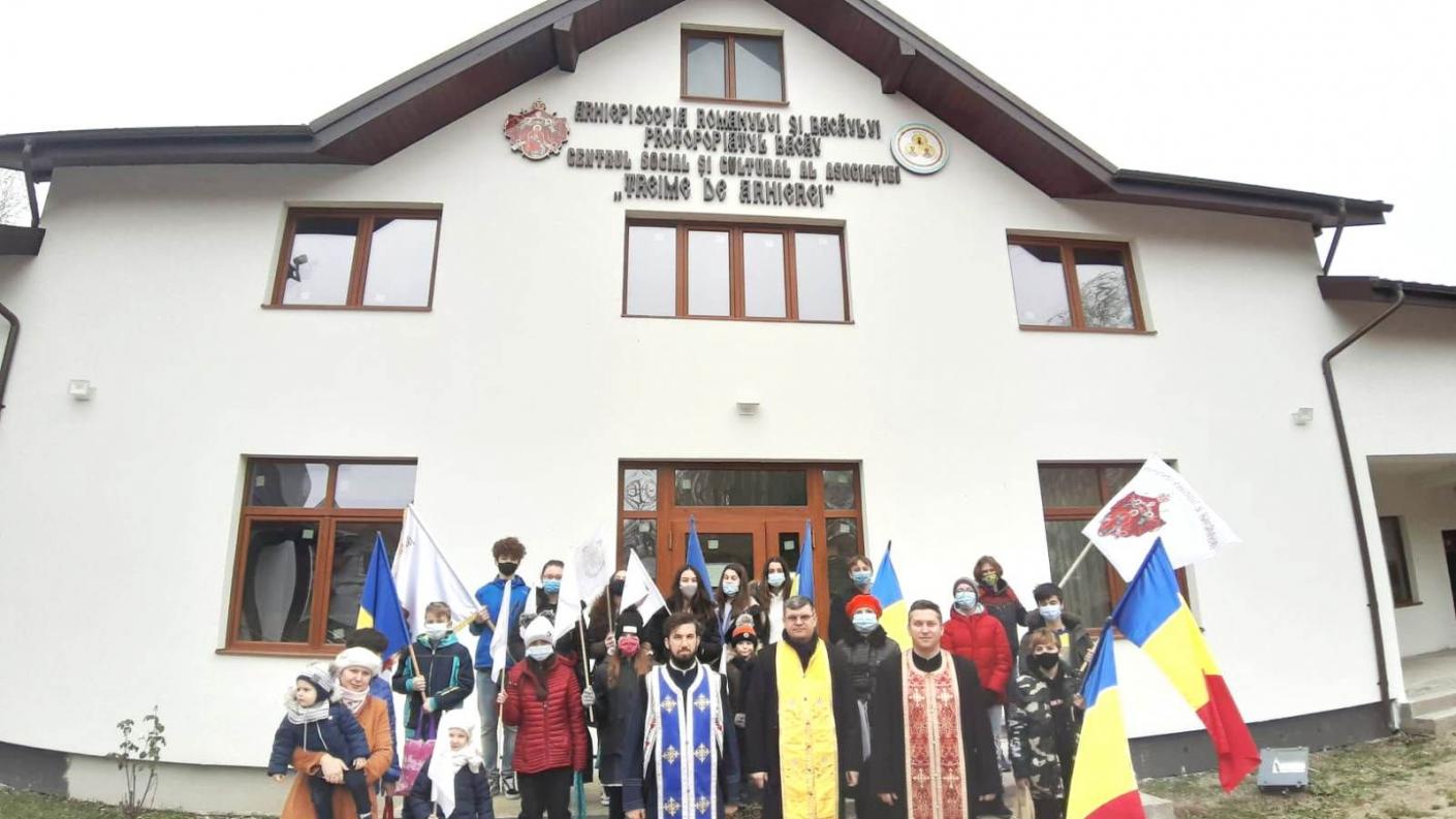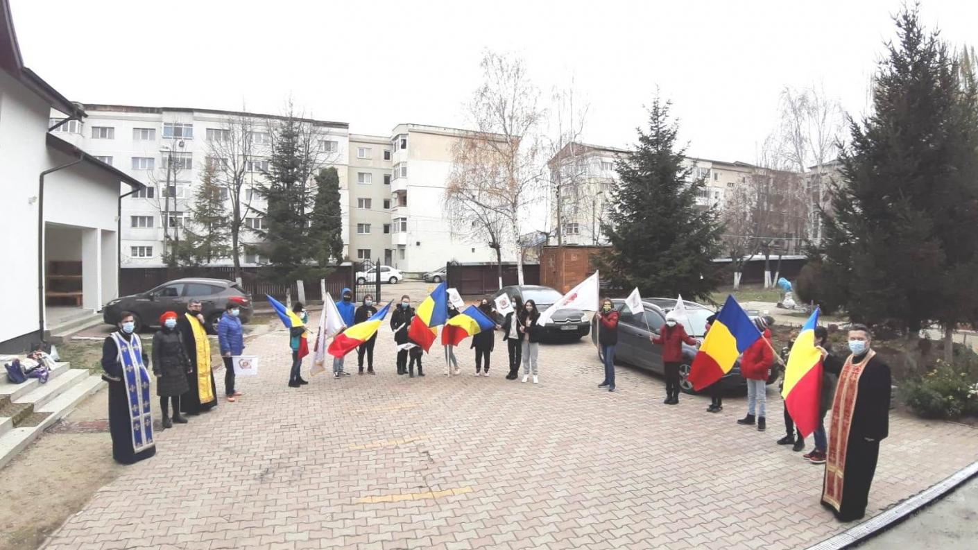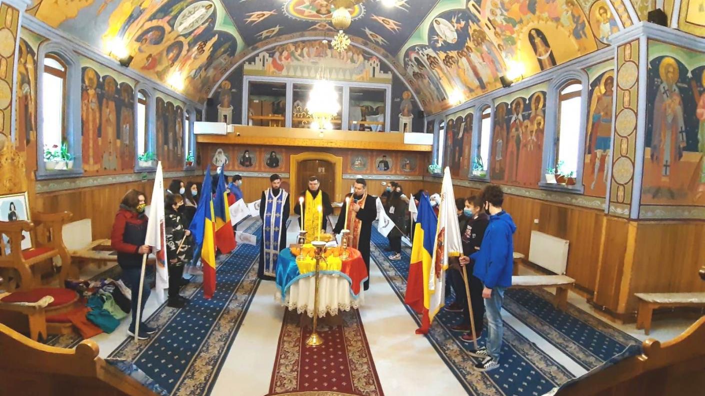 Această atmosferă de sărbătoare a fost întregită de prezenţa unor tineri inimoşi, elevi ai Şcolii Gimnaziale „Mihai Drăgan” din Bacău, coordonaţi de către doamna prof. de religie Cîrlan Mirela-Nela, înfrumuseţând slujba cu rugăciunile lor. Ei au purtat steaguri tricolore şi au intonat cântece patriotice.