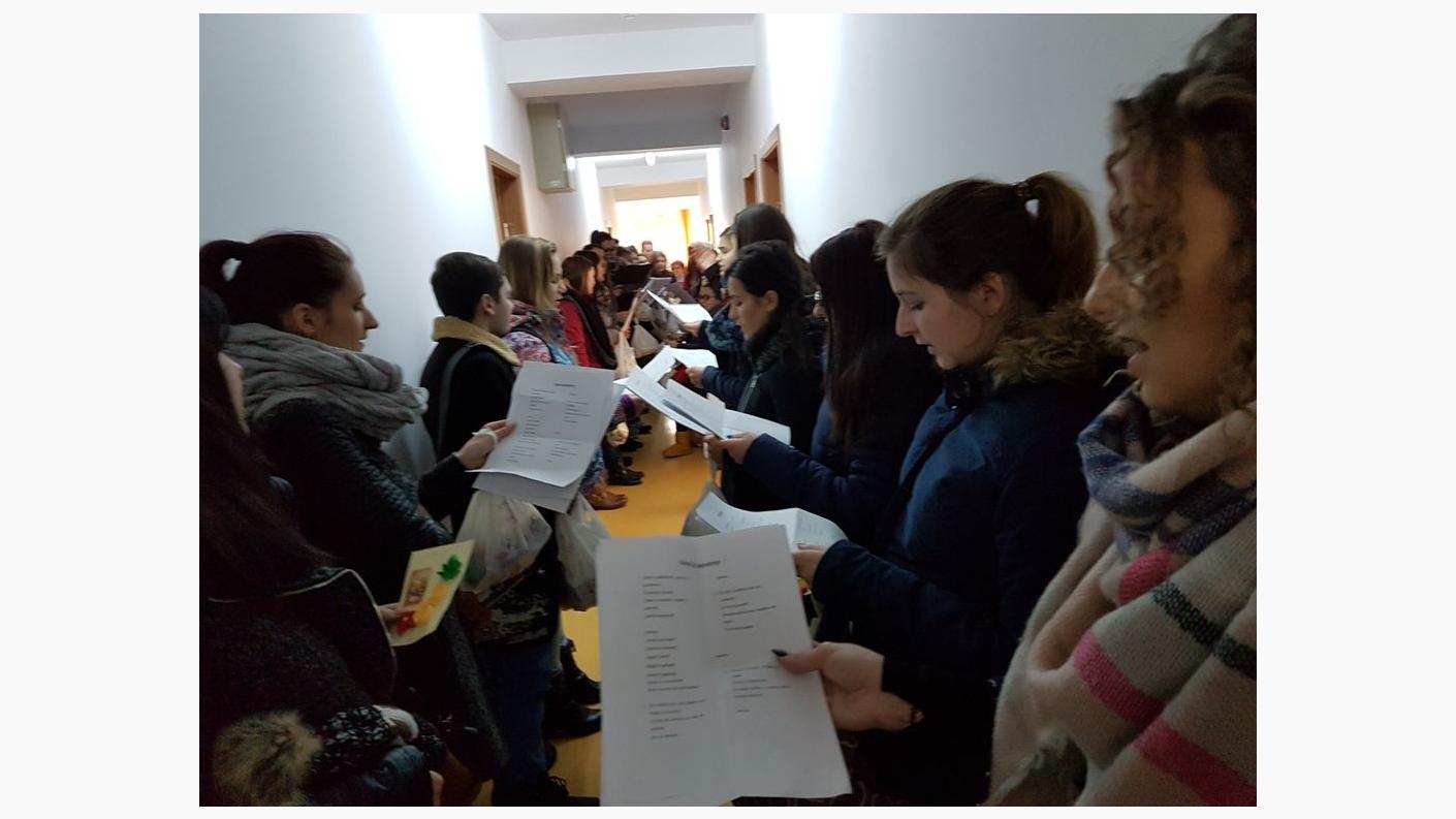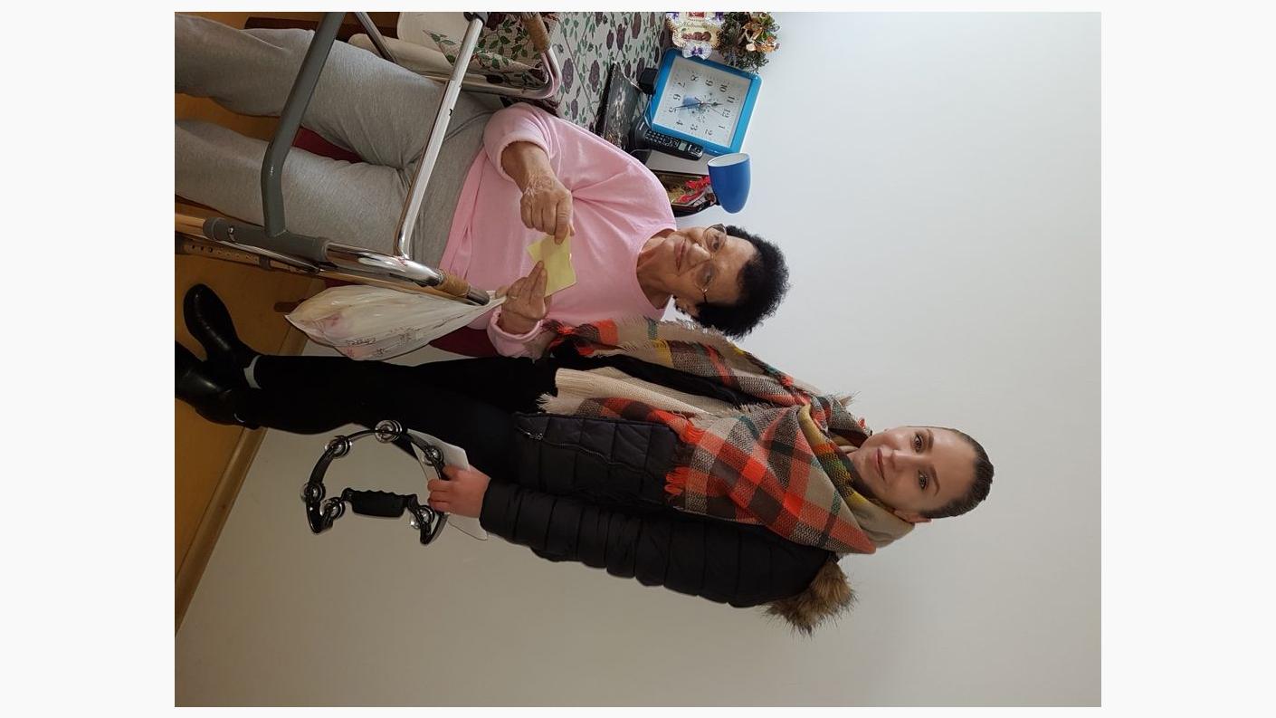 Tinerii studenți ai Anului III Asistență Socială, de la Universitatea A. I. Cuza din Iași, Facultatea de Filosofie și Științe Social – Politice, au plecat la colindat alături de unii angajați ai asociației de la Hârja și Pr. Ilarion Mâță, coordonatorul seminarului dela cursul de Asistență Socială a Persoanelor Vârstnice, oferind posibilitatea viitorilor asistenți sociali să interacționeze direct cu această categorie de beneficiri, oferindu-le în dar colindele tradiționale,fructe, dulciuri și felicitări confecționate de studenți. Acești studenți au devenit voluntari încă din vara anului trecut, ei realizând stagiul de practică în cadrul Centrului social - medical pentru persoane vârstnice de la Hârja.