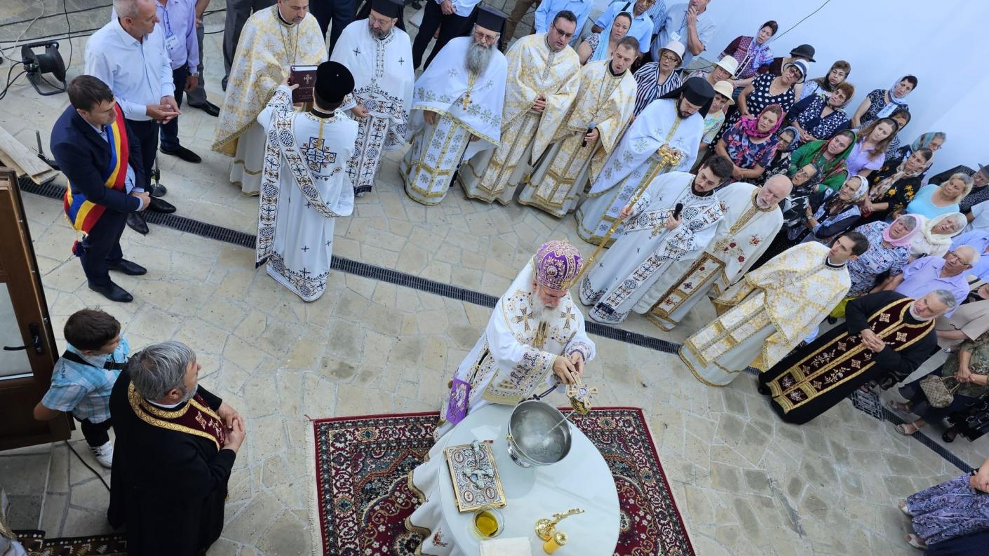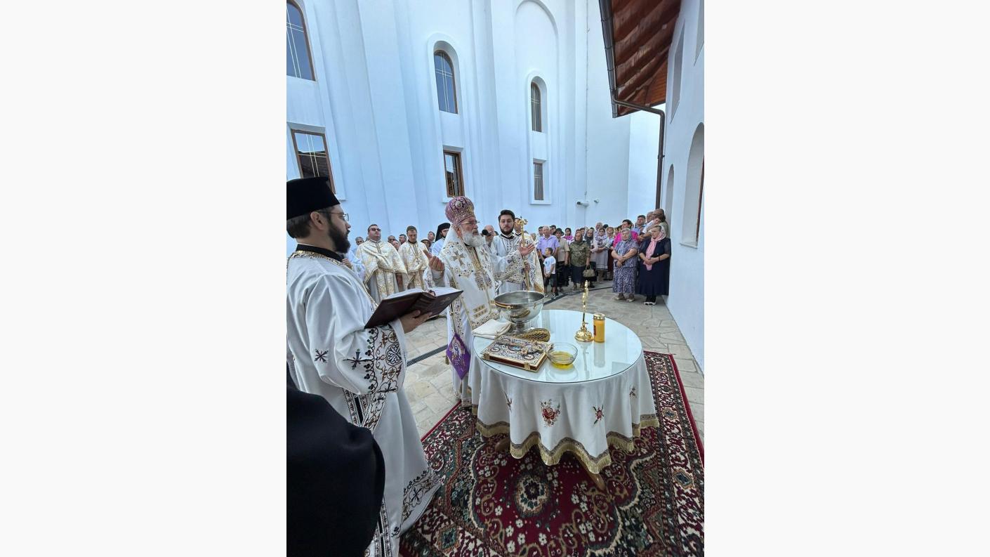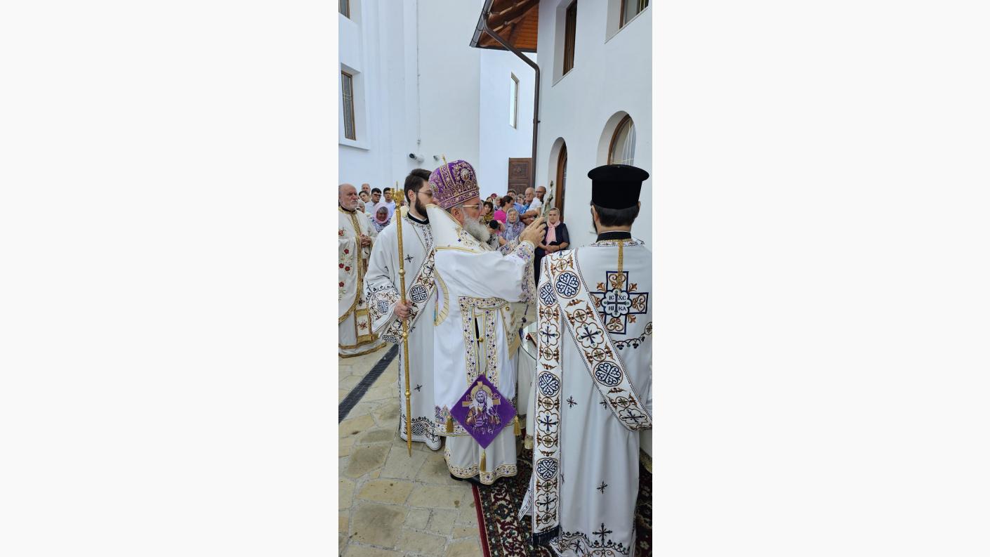 Efortul depus de fiecare a fost încununat prin slujba de sfințire a lucrărilor și săvârșirea Sfintei Liturghii de către Înaltpreasfințitul Părinte Ioachim, Arhiepiscopul Romanului și Bacăului, care a amintit în cuvântul de învățătură că acest eveniment are loc anul acesta întrucât se împlinesc 615 ani de atestare documentară a satului Cotu Vameș (amintit în actul de danie al lui Alexandru cel Bun la 16 septembrie 1408 cu numele „Dragomirești”) și 10 ani de la târnosirea „celui mai impresionant lăcaș de cult construit în mediul rural în Eparhia Romanului și Bacăului după anul 1990.” La Sfânta Liturghie arhierească au participat pr. Dan Alexandru Antoce, protopop al Protopopiatului Roman, Arhim. Iustin Dragomir, Arhim. Andrei Ioniță, un sobor numeros de preoți și diaconi, domnul Cristian Baciu, primarul Comunei Horia, reprezentanți ai autorităților locale și mulțime de popor.