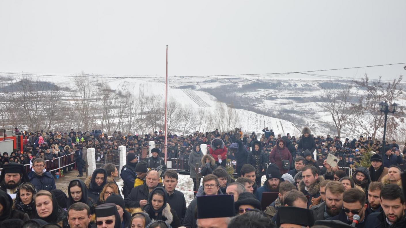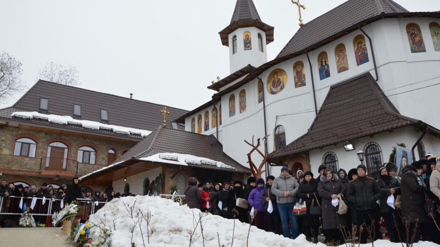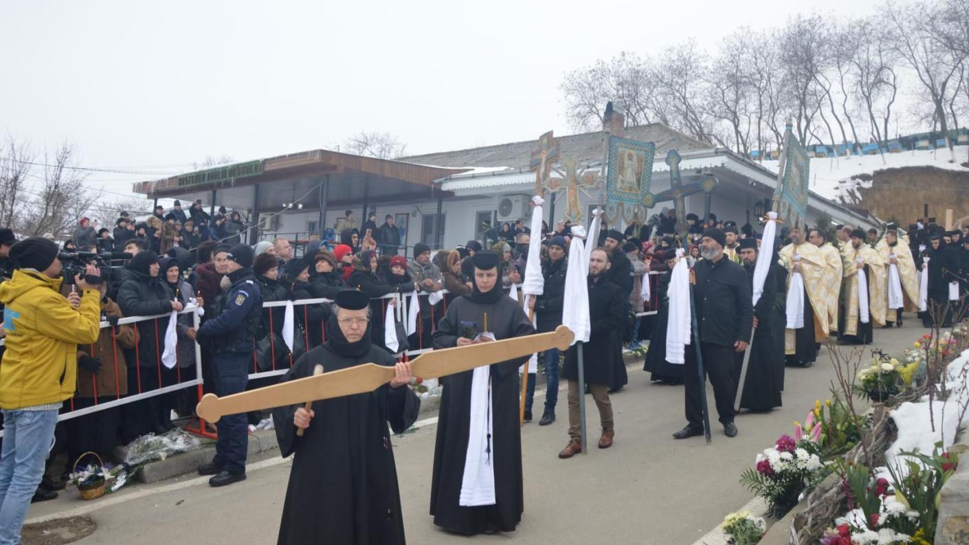Slujba de înmormântare a adus la Mănăstirea de la Giurgeni, alături de Înaltpreasfințitul Părinte Ioachim, Arhiepiscopul Romanului și Bacăului, pe Înaltpreasfințitul Teodosie, Arhiepiscopul Tomisului, și pe Preasfințitul Ignatie, Episcopul Hușilor. Fiecare dintre cei trei ierarhi a adresat un cuvânt de mângâiere și compasiune celor aproape două mii de pelerini și credincioși prezenți la Giurgeni.