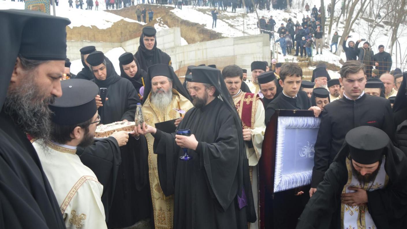 Trei ierarhi au săvârșit astăzi, 22 februarie, slujba de înmormântare a părintelui arhimandrit Antonie Jeflea, starețul mănăstirii ”Nașterea Maicii Domnului” – Giurgeni. Alături de Înaltpreasfințitul Ioachim, Arhiepiscopul Romanului și Bacăului, s-au aflat Înaltpreasfințitul Teodosie, Arhiepiscopul Tomisului, și Preasfințitul Ignatie, Episcopul Hușilor, precum și numeroși preoți și credincioși din toată Moldova, dar și din alte părți ale țării, care au dorit să-l conducă pe ultimul drum pe ucenicul Maicii Domnului de la Giurgeni.