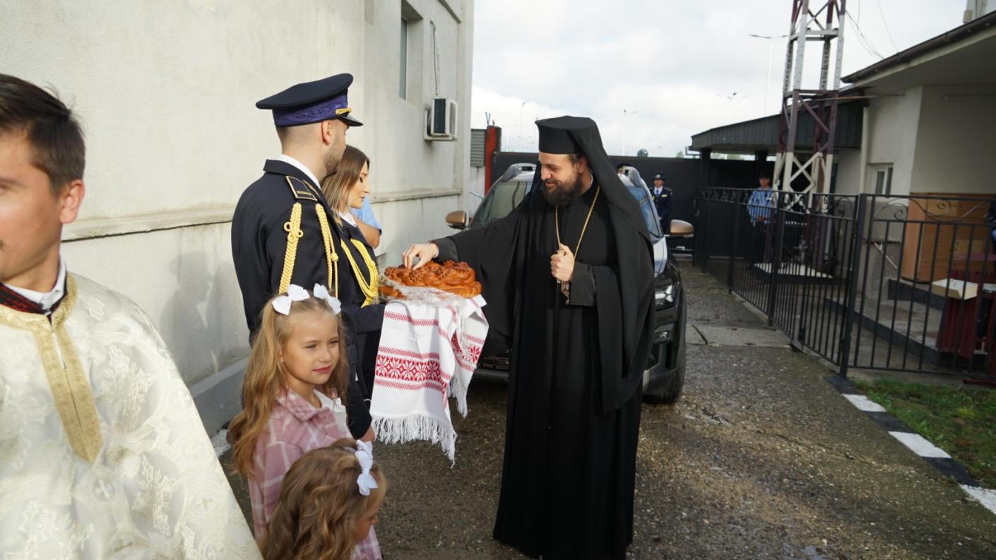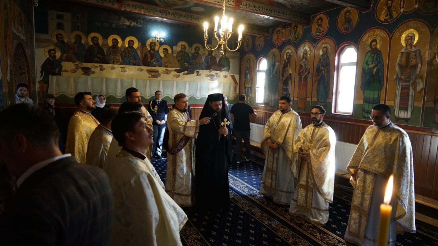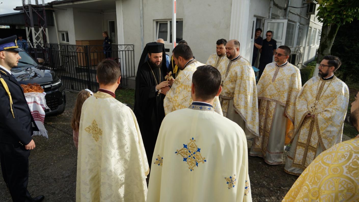 Slujba de sfințire a fost săvârșită, cu binecuvântarea Înaltpreasfințitului Părinte Ioachim, Arhiepiscopul Romanului și Bacăului, de către Preasfințitul Părinte Teofil Trotușanul, Episcop-vicar al Eparhiei, înconjurat de un numeros sobor de preoți.