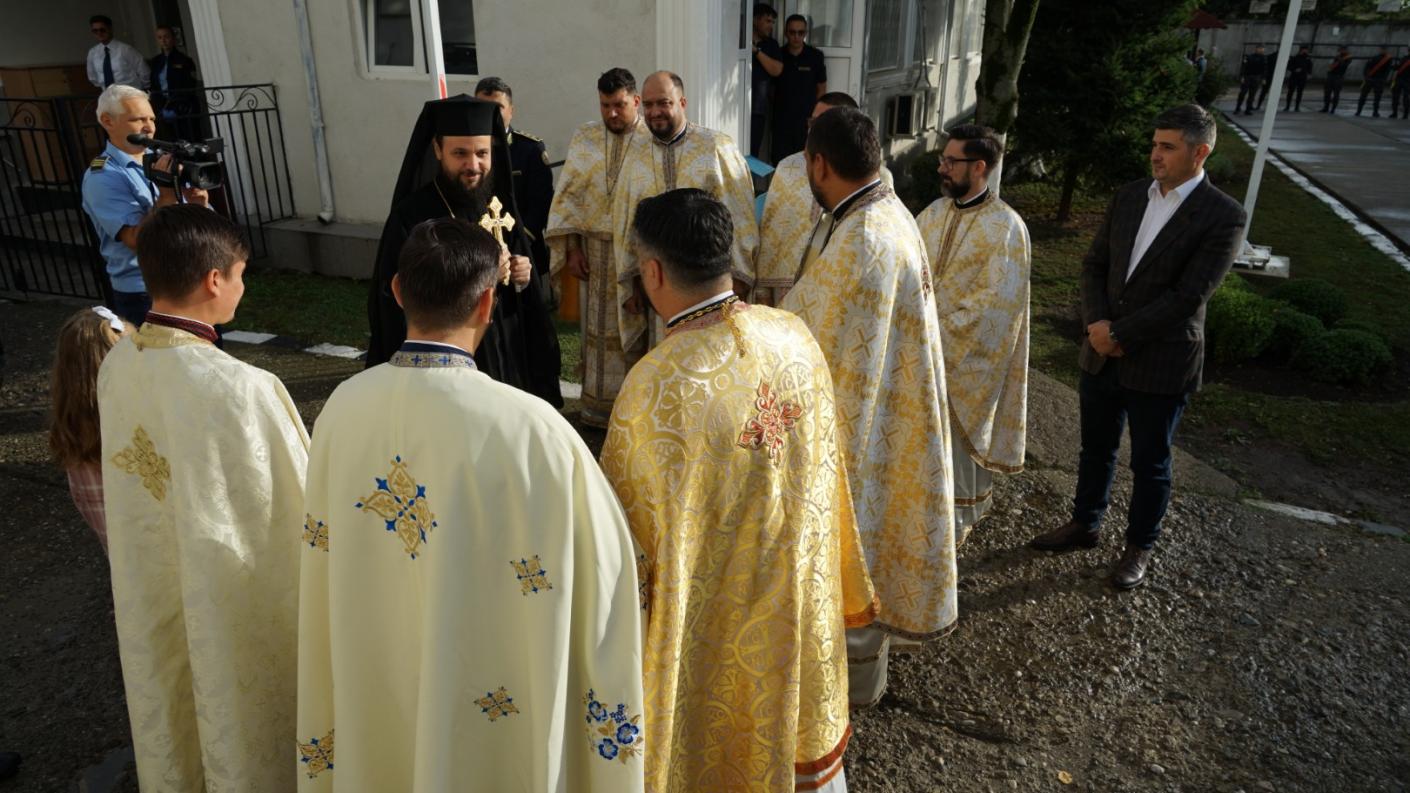 Evenimentul a fost integrat într-un ceremonial militar emoționant și a fost precedat de slujba Acatistului Sfintei Cruci și Sfânta Liturghie, oficiate în capela Penitenciarului Bacău. La finalul Sfintei Liturghii Preasfințitul Părinte Teofil Trotușanul a citit slujba de binecuvântare a drapelului, care a fost apoi ridicat lângă troița ce a fost sfințită.