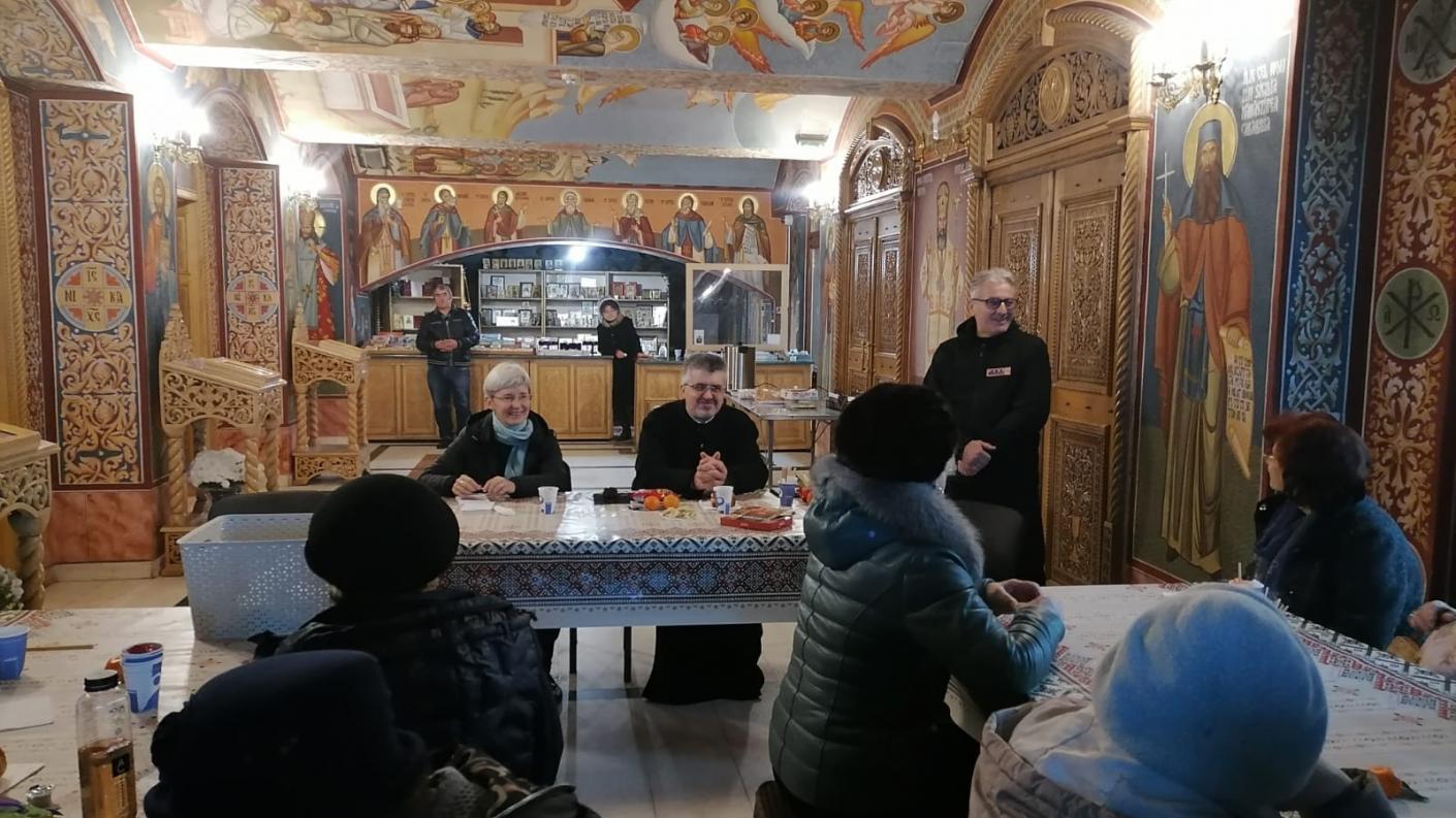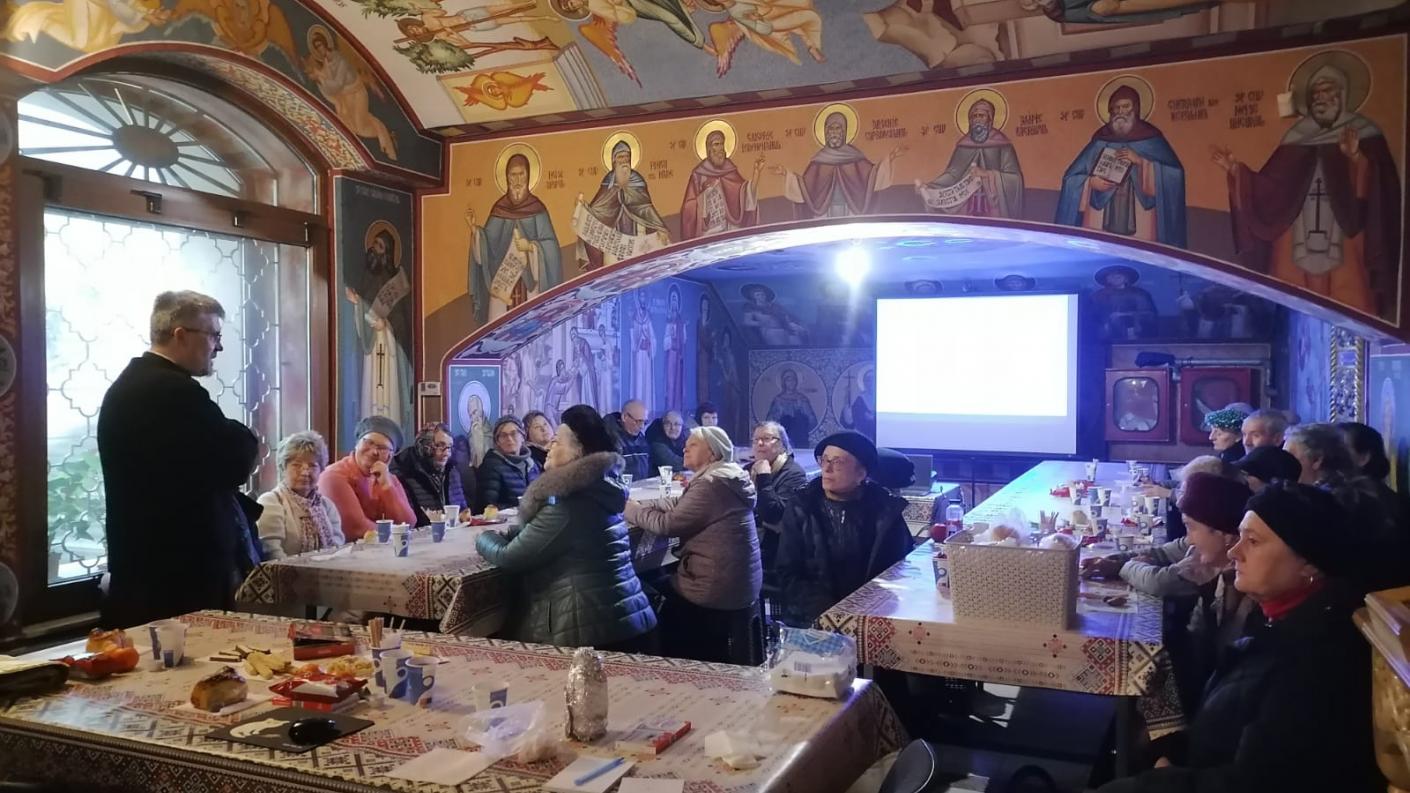În continuare, domnul epitrop Gheorghiță Ursache, cu o experiență de peste 20 de ani în activitățile Catedralei, a împărtășit seniorilor povestiri și amintiri din perioada ridicării lăcașului de cult: de la bucuriile și reușitele diverselor etape de construcție, până la provocările întâmpinate – precum inundațiile cauzate de refularea canalizării, dificultățile financiare sau realizarea cofragului special pentru turnarea arcelor. Cu umor și emoție, acesta a evocat și experiența sa de „clopotar de furtună”, o activitate devenită aproape legendară în rândul comunității.