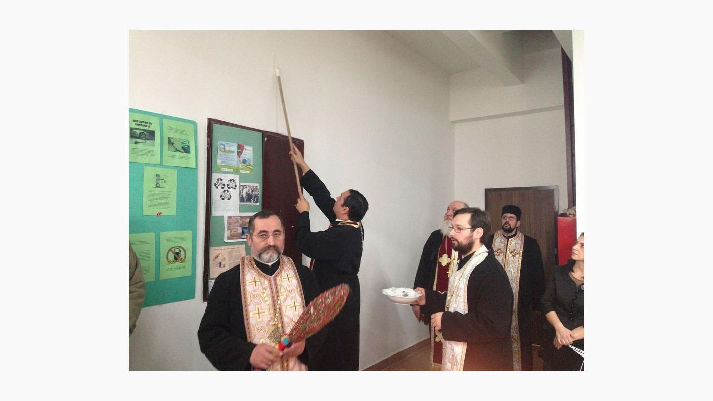 Inaugurarea a avut loc în cadrul unei slujbe oficiate de către Pr. Eugen Ciuche, consilier al Sectorului Social – Filantropic al Arhiepiscopiei Romanului și Bacăului, delegat al Preasfințitului Ioachim, de către pr. Protopop Constantin Alupei, alături de un sobor de preoți invitați. Un aspect deosebit este acela că, la acest proiect, alături de Celegiul gazdă și Asociația de la Hârja, a fost prezentă și Parohia „Sf. Impărați Constantin și Elena” Onești, paroh fiind pr. Ioan Ursu.