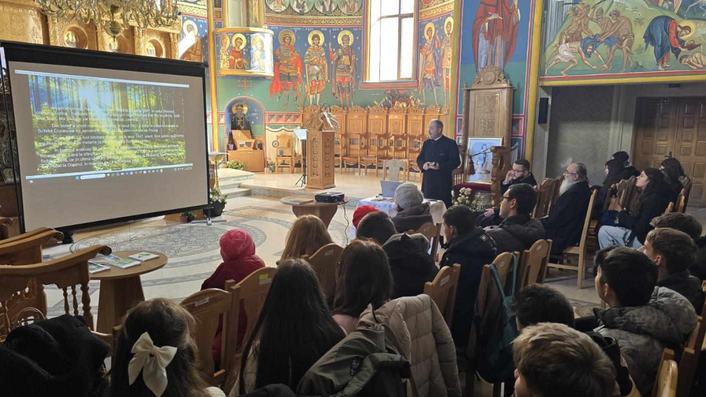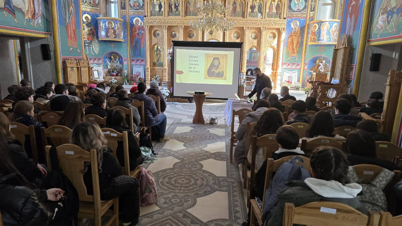 În cadrul Concursului Național Catehetic „Mărturisirea jertfelnică a dreptei credințe – moștenirea unui secol de Patriarhat”, la Catedrala „Nașterea Maicii Domnului și Sfântul Ierarh Nicolae” din Protopopiatul Moinești, a fost prezentată miercuri, 12 februarie 2025, a treia cateheză cu titlul: „Sfinții Cuvioși Paisie și Cleopa de la Sihăstria”.