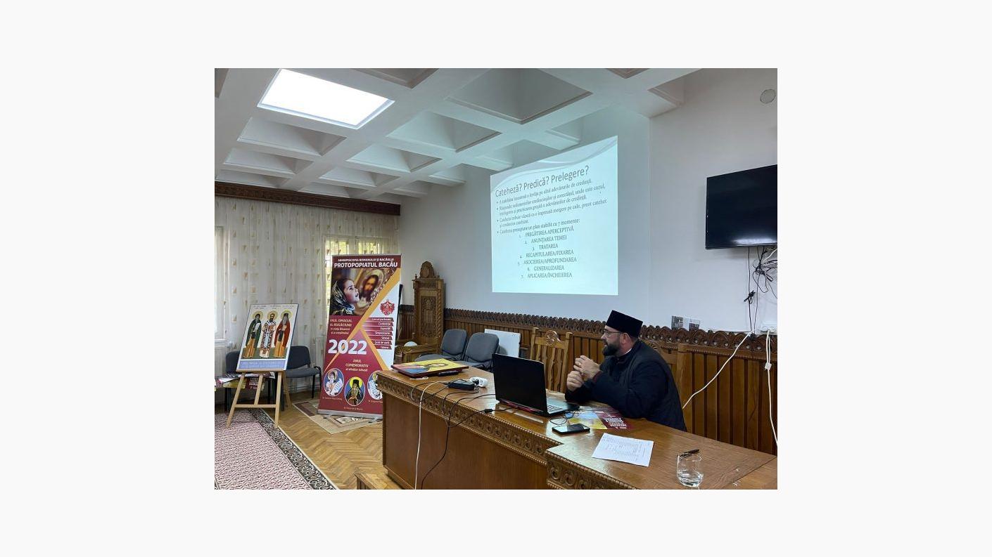 Vineri, 21 octombrie 2022, Protoieria Bacău a găzduit o ședință de lucru în vederea implementării unui nou proiect socio-cultural intitulat „100 de cateheze în Postul Crăciunului” și desfășurat cu binecuvântarea Înaltpreasfințitului Părinte Arhiepiscop Ioachim. Întâlnirea prezidată de către părintele protoiereu Eugen-Ciprian Ciuche a adunat 40 de preoți din parohii rurale și urbane, care cu acest prilej au putut afla de pașii derulării proiectului și și-au reîmprospătat cunoștințele cu privire la etapele specifice alcătuirii unei cateheze, prezentate succint de către părintele Bogdan Hărăbor.