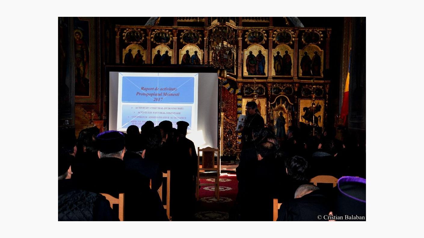 În ultima parte a întâlnirii a avut loc o ședință administrativă în cadrul căreia părintele protoiereu a prezentat Raportul activităților pastoral-misionare și cultural-filantropice ale Protopopiatului Moinești în anul 2017.