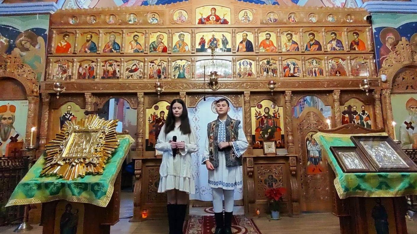 Primul moment cultural a fost realizat la sfârşitul Sfintei şi Dumnezeieştii Liturghii de către elevii Şcolii Gimnaziale „Mihai Drăgan”, Mocanu Teodora şi Lupescu Denis (clasa a VII-a A). Ei au venit însoţiţi de doamna Prof. de Muzică, Rădăcină Teodora şi doamna Prof. de Religie, Mirela-Nela Cîrlan, marcând acest moment deosebit din istoria poporului român, prin susţinerea unui recital de cântece patriotice.