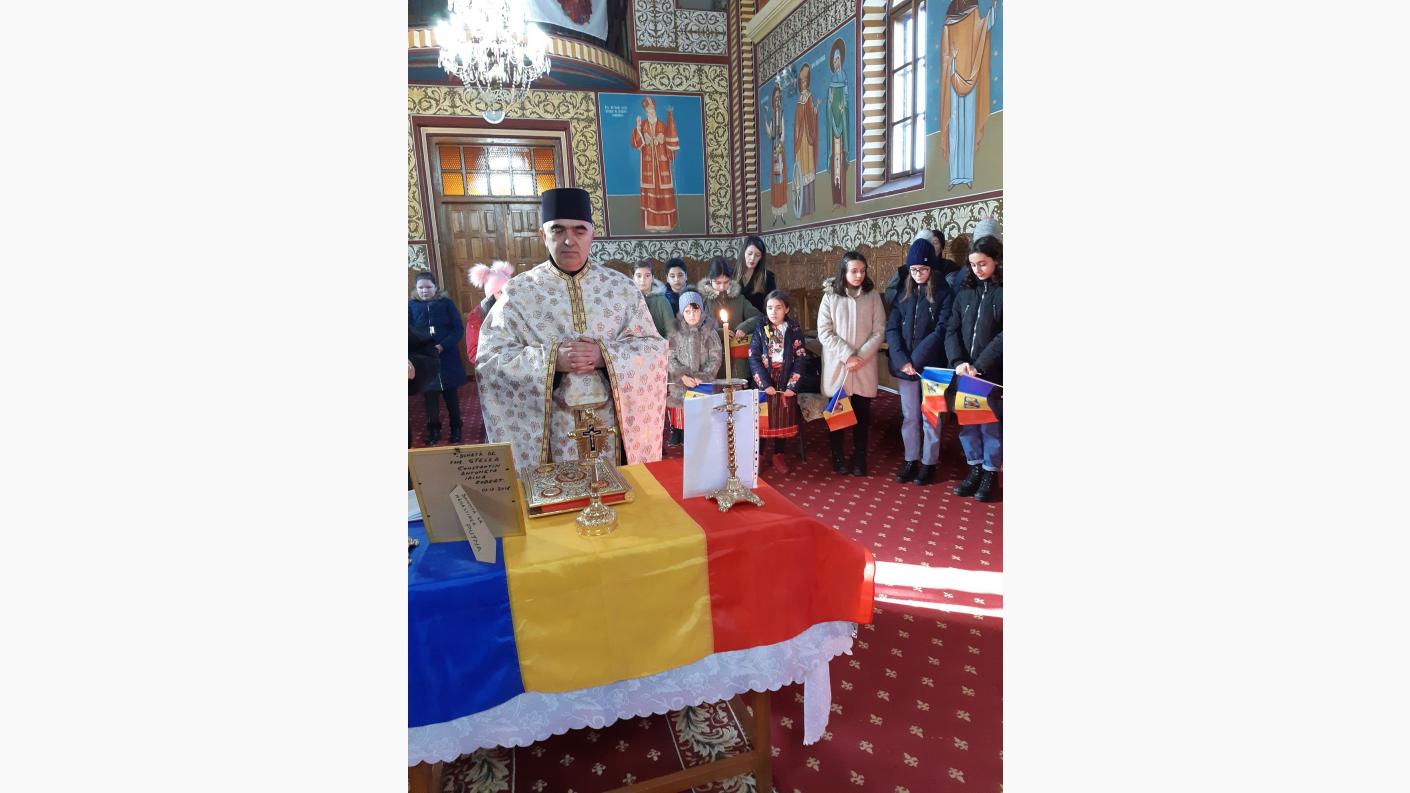 Proiectul a debutat cu săvârşirea slujbei de Te Deum, slujbă ce a avut loc în biserica parohială cu hramul Adormirea Maicii Domnului. Apoi a fost săvârșită şi slujba de pomenire pentru domnitorul Alexandru Ioan Cuza, Mitropoliţii Nifon al Ţării Româneşti şi Sofronie Miclescu al Moldovei (și preşedinţi ai Divanelor ad-hoc), Ep. Melchisedec Ştefănescu şi a celorlalţi făuritori ai Unirii Principatelor Române. A fost depusă o coroană, la țroiţa din curtea bisericii, din partea enoriaşilor parohiei.