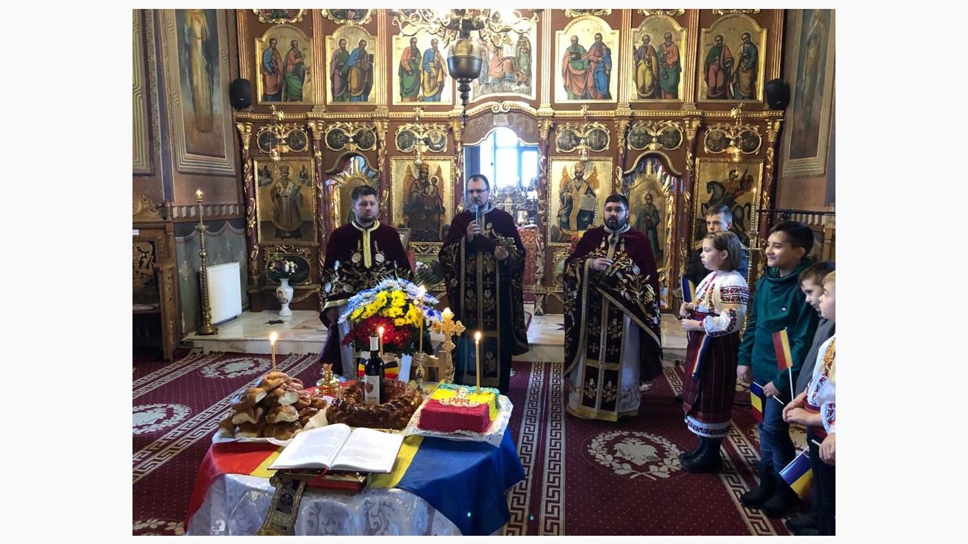 După Sfânta Liturghie, începând cu ora 10.00, a fost oficiată slujba de Te Deum, ca mulțumire adusă lui Dumnezeu pentru realizarea acestui act fundamental din istoria noastră națională la care Biserica Ortodoxă Româna a contribuit în mod semnificativ.
