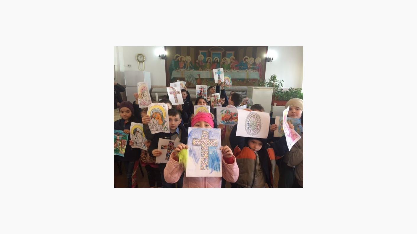Au urmat atelierele de pictură și creație în care fiecare copil și-a exprimat prin îndemânare proprie percepția asupra Patimilor și Învierii Mântuitorului (desene reprezentând Răstignirea pe Cruce, Fecioara Maria cu Pruncul, Sfânta Cruce, drumul parcurs de Sfânta Familie în Egipt).