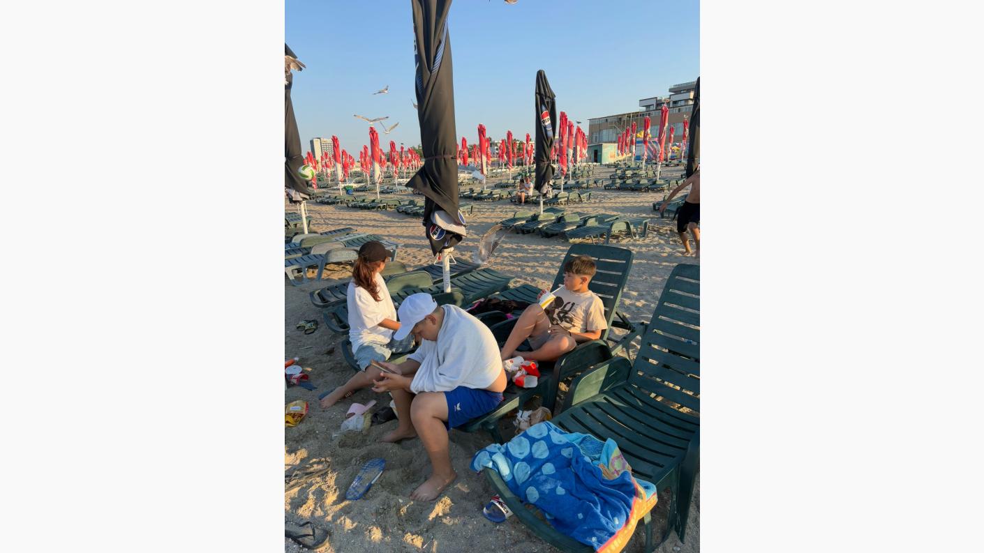 – un apus de soare pe plajă, savurat cu pizza și suc, alături de ceilalți copii;