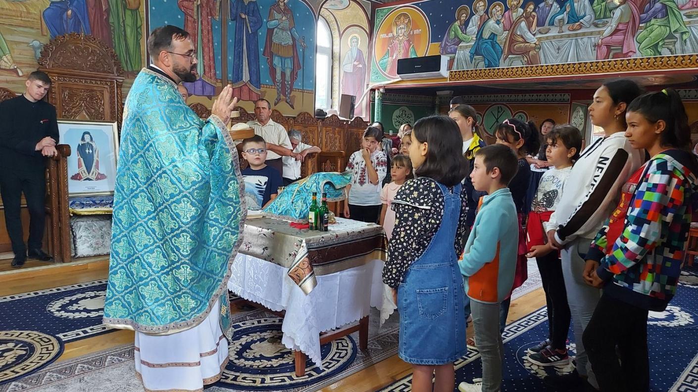 La Sfânta Liturghie copiii au participat activ oferind răspunsurile la strană, iat o parte au purtat lumânări la Vohod înaintea preoților. După terminarea Sfintei Liturghii micii creştini au primit din partea gospodinelor parohiei plăcinte și faguri cu miere.
