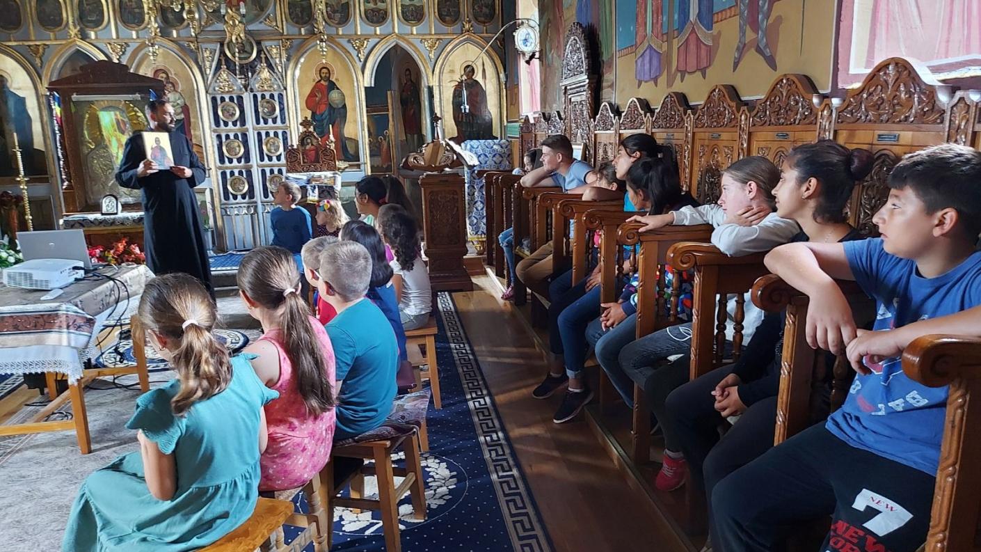 - Miercuri, în prima parte a activității începută la ora 10, copiii au participat la o cateheză despre Sfântul Ilie și despre dependența de jocurile pe telefon ca încălcare a poruncii a doua din Decalog, dar și despre siguranța în lumea virtuală.