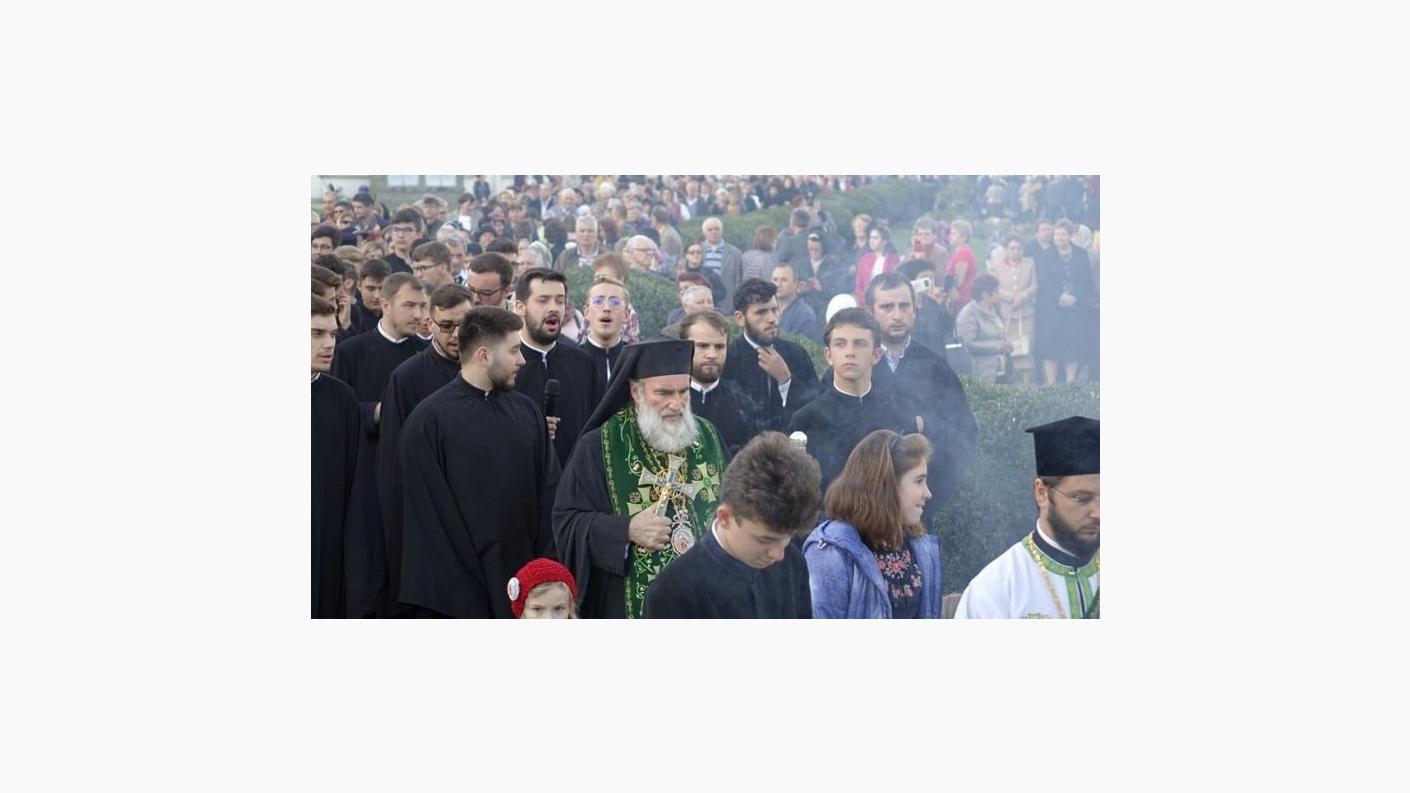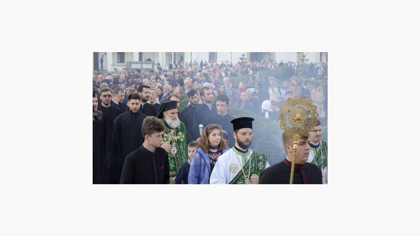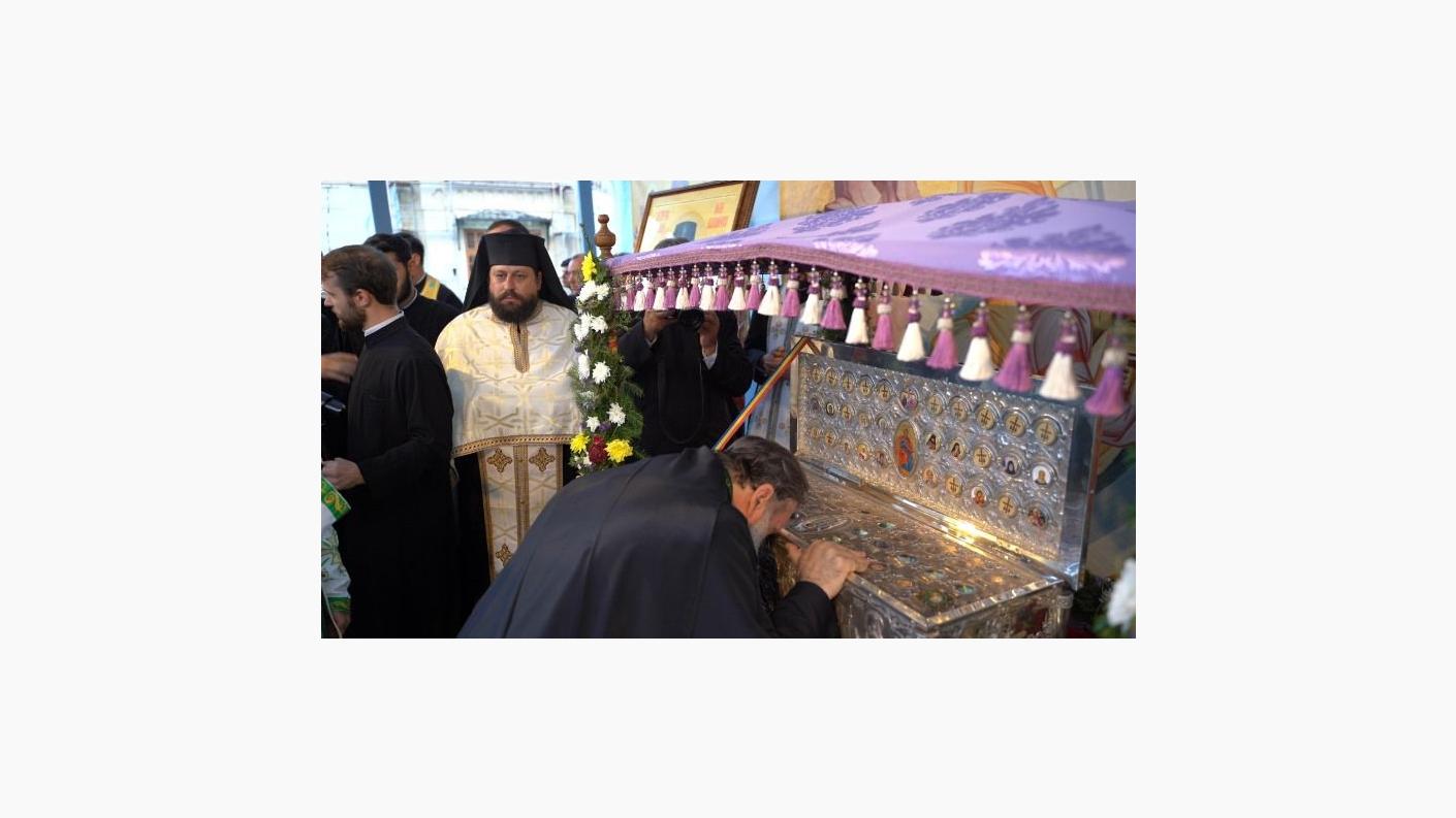 Cler și popor s-au adunat în rugăciune la racla ce adăpostește o părticică din sfintele moaște ale Sfintei Parascheva, aflată în Catedrala arhiepiscopală din Roman, cu prilejul Vecerniei hramului acestui sfânt chivot mușatin închinat ocrotitoarei întregii Moldove. După oficierea slujbei, în sunet de clopot, soborul preoților și pelerinii prezenți s-au deplasat în procesiune înălțând imnuri de cinstire Sfintei Parascheva și înconjurând Catedrala arhiepiscopală, oprindu-se în cele patru puncte cardinale pentru a mijloci în rugăciune ajutorul și ocrotirea lui Dumnezeu. La finalul procesiunii, racla cu sfinte moaște a fost așezată într-un baldachin pe scena amenajată în latura de miazănoapte a Catedralei, unde Înaltpreasfințitul Părinte Ioachim a oficiat slujba acatistului închinat sfintei care în aceste zile de sărbătoare înalță inimile românilor din întreaga țară.