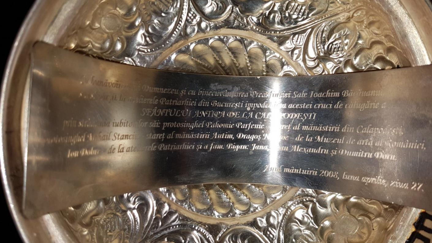 Încredințăm aceste Sfinte Moaște aflate în patrimoniul spiritual al Catedralei părintelui arhimandrit Serafim, delegatul nostru la Calapodești, ca să le însoțească la credincioșii care mâine vor fi prezenți la Mănăstirea zidită în locurile natale ale acestui sfânt, în comuna Dealu Morii. Din această oază de spiritualitate de la Calapodești va fi adusă spre închinarea credincioșilor romașcani Sfânta Cruce, cea pe care a purtat-o Sfântul Antipa toată viața în peregrinările sale. Această cruce a binecuvântat pe foarte mulți credincioși care s-au închinat cu evlavie la ea, credincioși din părțile Iașului, ale Moscovei, ale Kievului și ale Leningradului. De acolo va fi adusă și pusă spre cinstire pentru credincioșii care vor fi prezenți și vor binevoi să vină la Sfânta Liturghie, la catedrală, mâine, 10 ianuarie, în însăși ziua hramului.