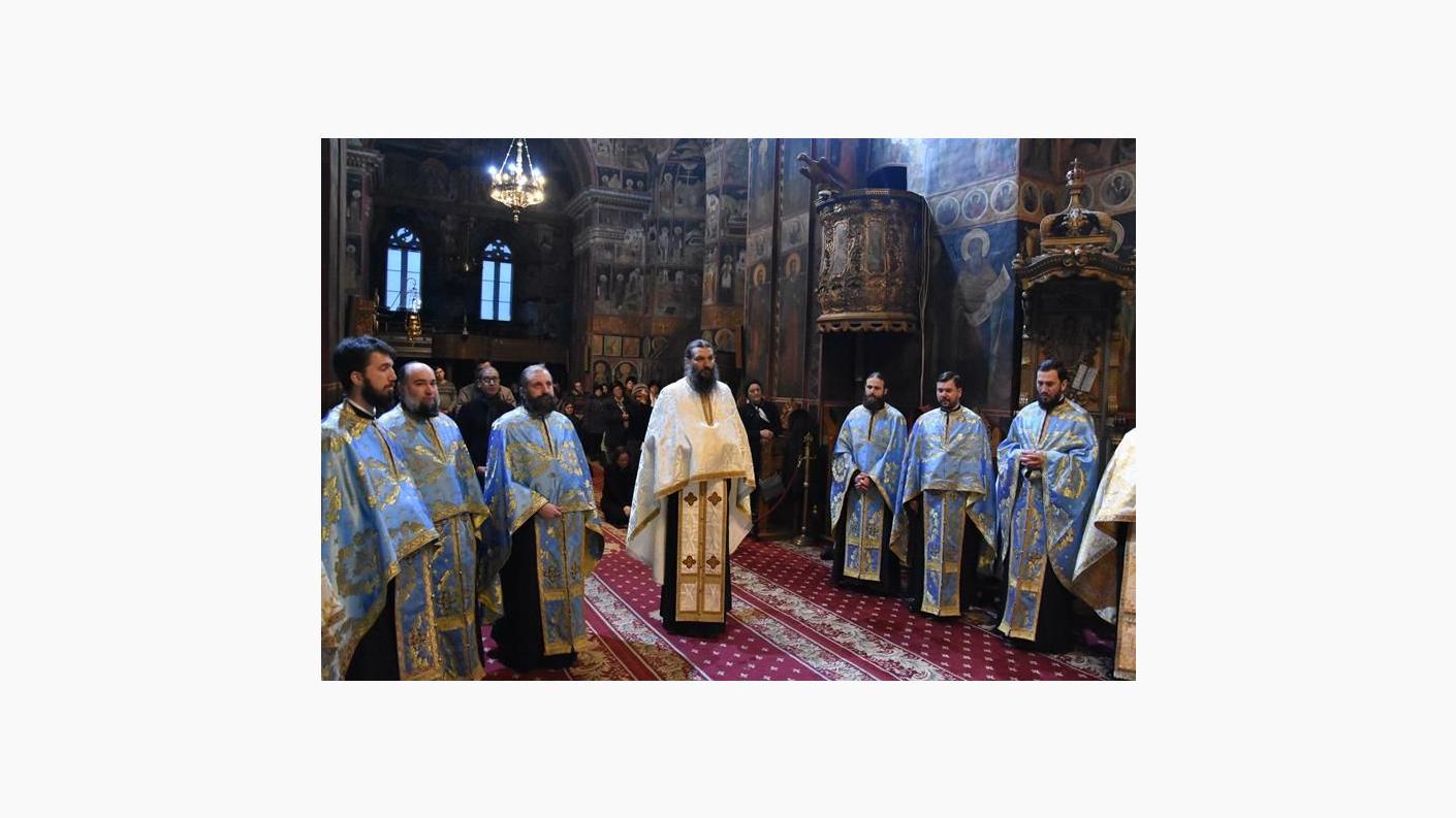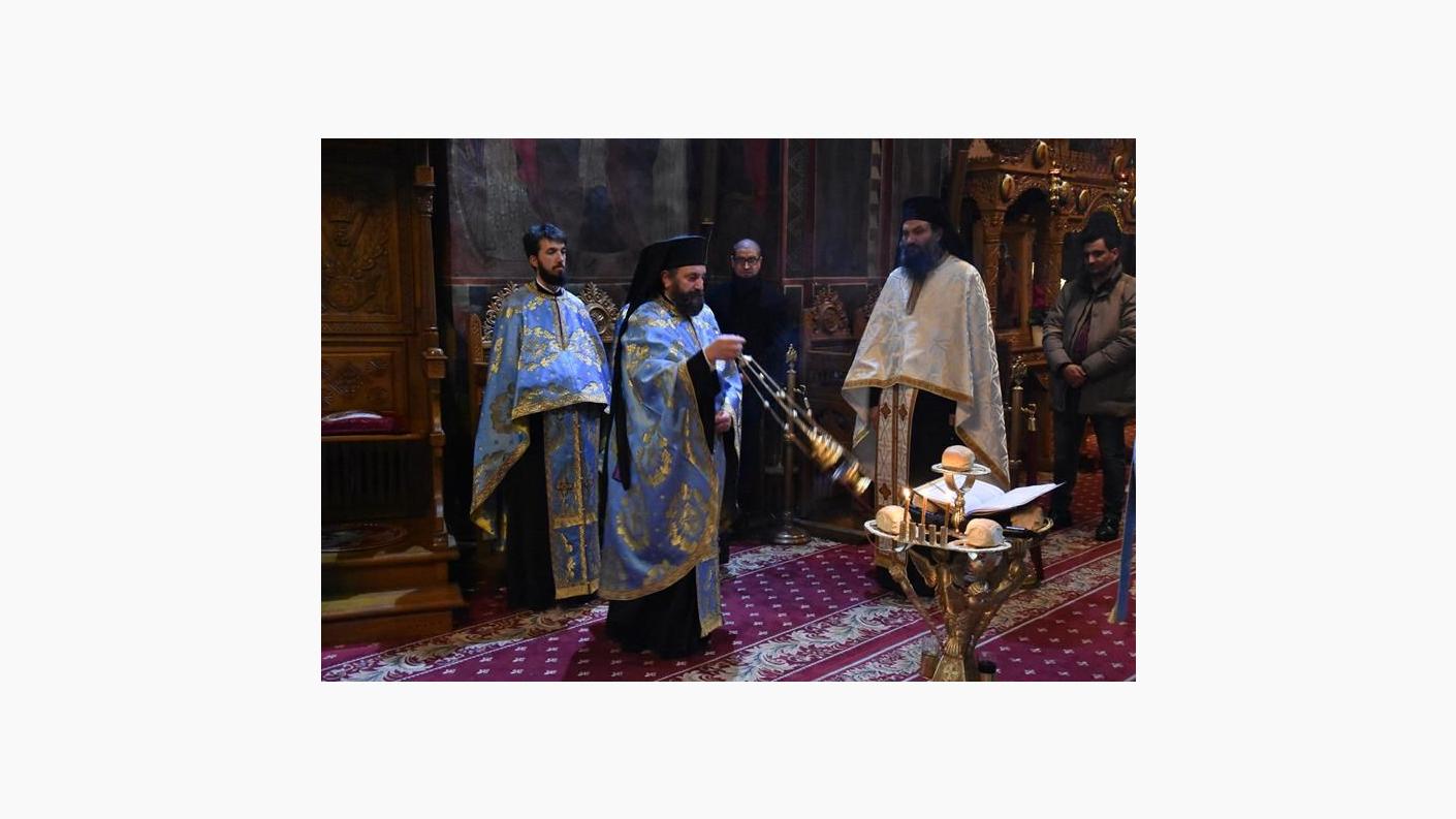Cu binecuvântarea Înaltpreasfințitului Părinte Ioachim, P.Cuv. Părinte arhimandrit Pimen Costea, Vicar Eparhial înconjurat de soborul preoților și diaconilor, a săvârșit slujba Vecerniei unită cu Litia sub privirea lină a sfântului născut în ținutul eparhial al Calopodeștilor, zugrăvit în icoană de părintele Antipa de la Mănăstirea Antim din București, fiu al eparhiei.