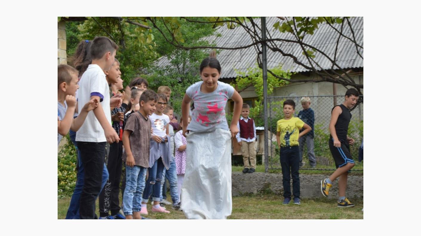 Joaca lor a răspȃndit zumzet fin în centrul satului, cei mici şi cei mari au cȃntat versuri copilăreşti şi au dansat, au colorat asfaltul, iar concursurile au fost momente pentru aplauze şi încurajări adresate echipelor de copii.