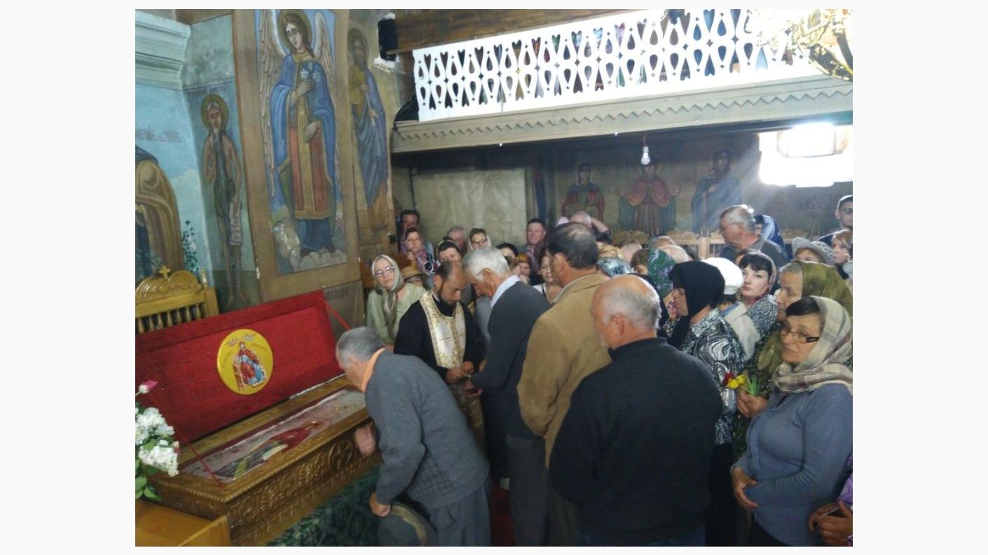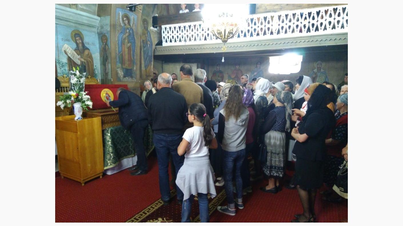 Acest odor neprețuit a fost întâmpinat la vremea vecerniei de un sobor de preoți sub protia Pr. Protopop Costel Mareș, dimpreună cu mulțime de credincioși din parohie, fiind așezat în biserică în loc special amenajat, pentru ca enoriașii acestei comunități și din împrejurimi să-l venereze cu evlavie.