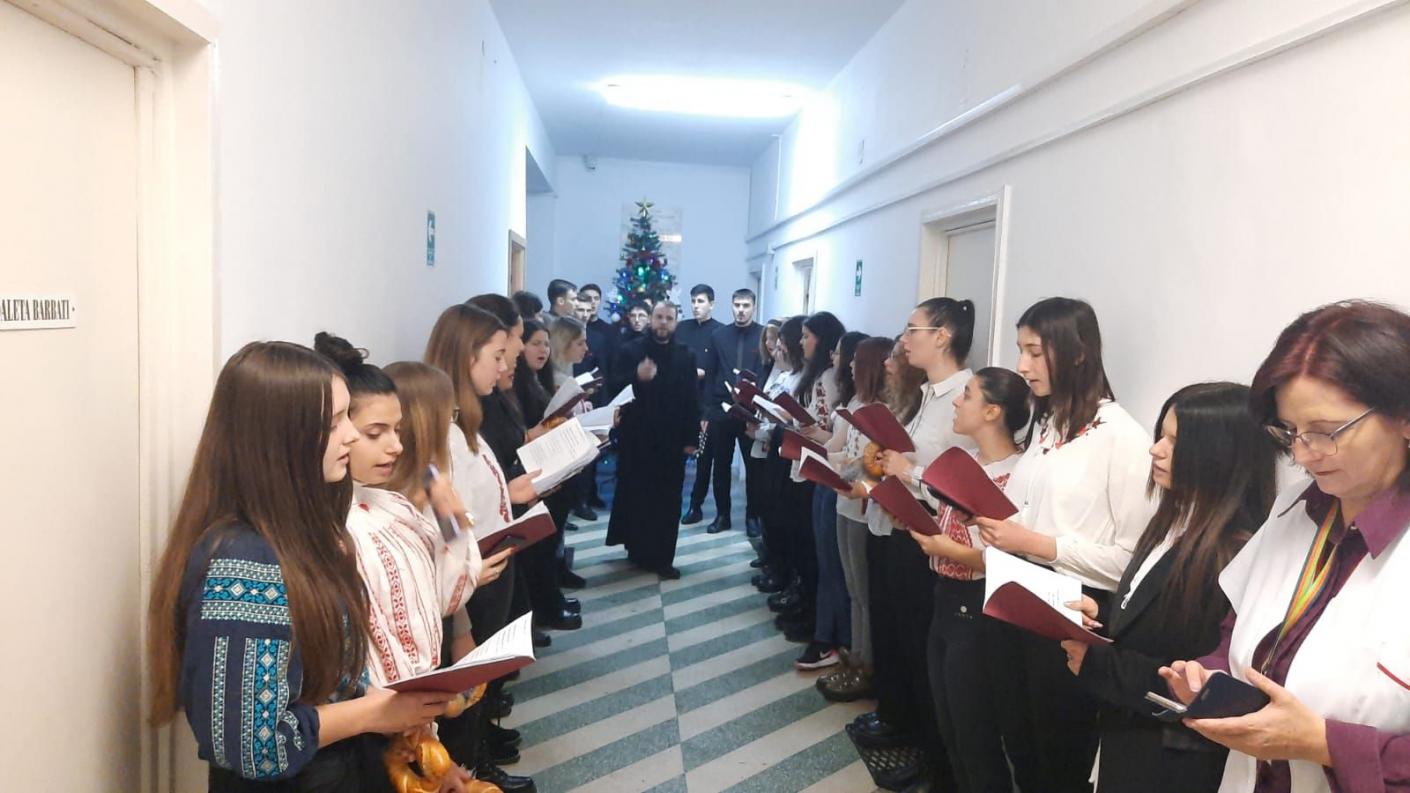 Spitalul Municipal de Urgență Roman a permis elevilor pentru să colinde saloanele cu bolnavi și obștea ostenitorilor din acest așezământ. Doamna Doctor Andrici Maria, Manager al instituției, a facilitat realizarea acestei inițiative în data de 15 decembrie, motiv pentru care comunitatea educațională a liceului teologic îi mulțumește. Spitalul Municipal de Urgență din Roman reprezintă unul din partenerii educaționali strategici ai liceului, din moment ce învățământul clinic al elevilor de nivel postliceal se realizează aici. Activitatea s-a realizat cu sprijinul părintelui capelan Petrea Silviu, al Capelei Izvorul Tămăduirii din SMU Roman.