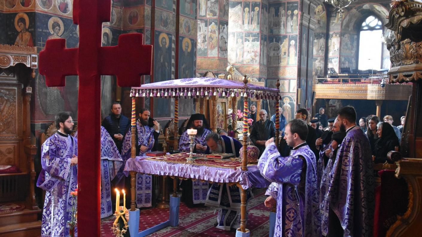 Astfel, după tipicul liturgic al acestei perioade, a avut loc și procesiunea scoaterii din sfântul altar a Sfântului Epitaf, care a fost aşezat de către Ierarh în mijlocul bisericii. Odorul va rămâne spre închinare în mijlocul Bisericii până la slujba Deniei Prohodului, oficiată în cursul serii din aceeași zi.
