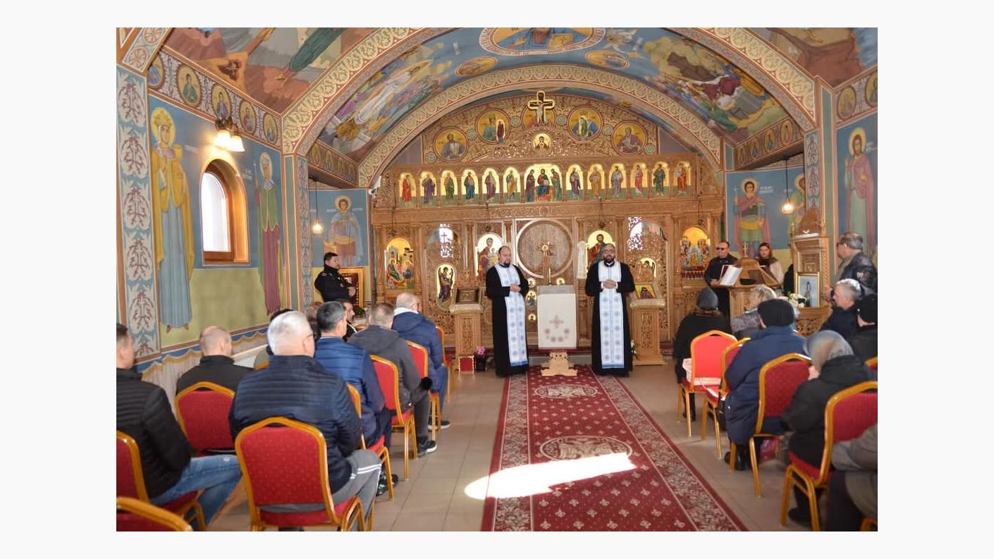 După ce au ajuns la biserică, preotul Ciprian Purice, împreună cu preotul capelan Daniel Mașala, au săvârșit slujba Acatistului Sfântului Gherasim de la Tismana, a cărui canonizare a fost proclamată în mod oficial recent, știut fiind că sfântul a plecat spre Împărăția Cerurilor de pe patul aceluiași spital în care sunt cazați în prezent deținuții.