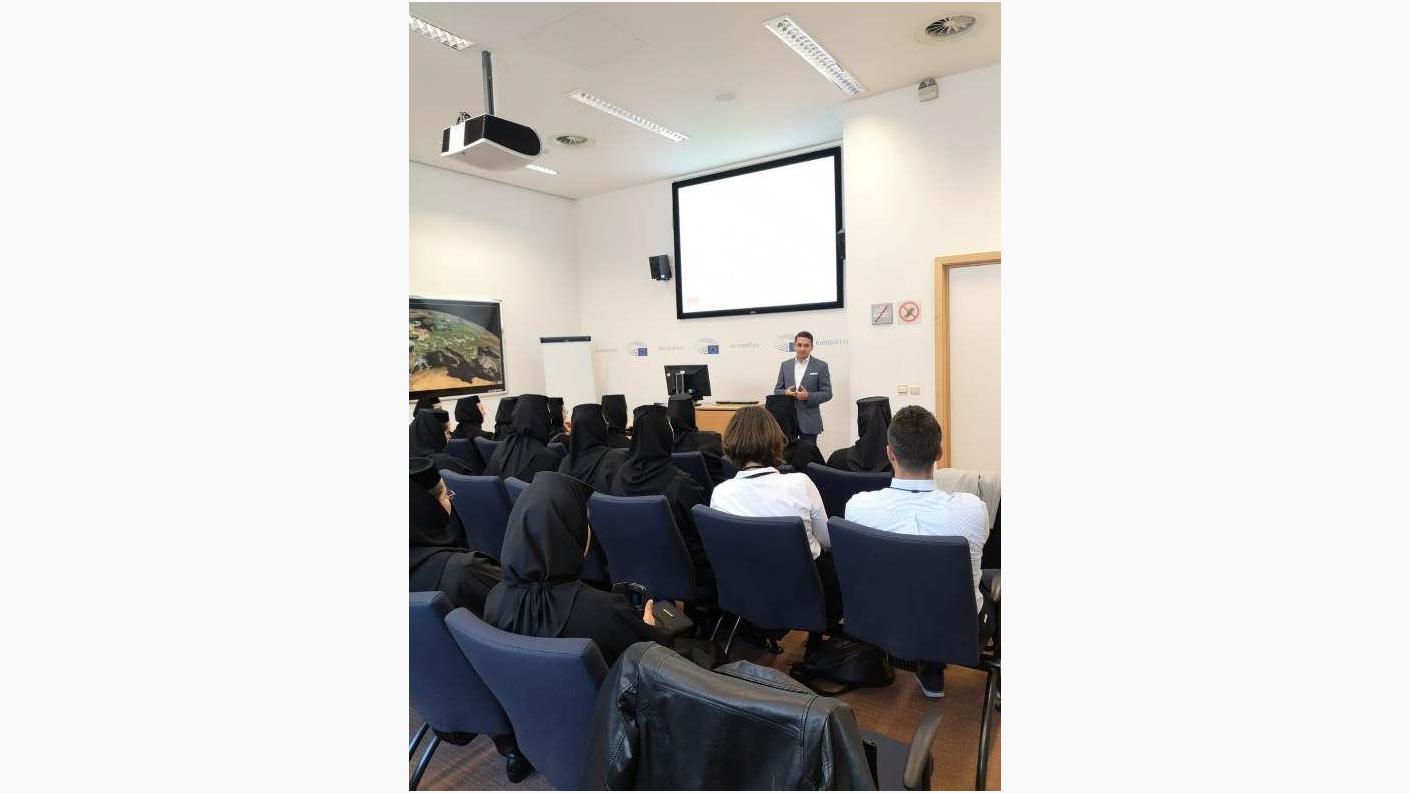 Cu binecuvântarea Înaltpreasfințitului Părinte Ioachim, Arhiepiscopul Romanului și Bacăului, și la invitația Domnului Ioan Mircea Pașcu, Vicepreședintele Comisiei pentru Afaceri Externe a Parlamentului European, un grup de 15 maici de la Centru Eparhial Roman, însoțite de maica stareță a mănăstirii Văratic, Stavrofora Iosefina Giosanu, în zilele de 27, 28 și 29 septembrie au vizitat Parlamentul European, Bruxelles-ul și alte locuri din Belgia. Vizita a debutat la sediul Parlamentului, unde au fost văzute Sala de Ședinte în Plen și alte săli din generosul spațiu. Totodată, au avut loc întălniri cu europarlamentarii noștri, care au prezentat unele aspecte din agendele lor de lucru și au răspuns cu bunăvoință întrebărilor adresate de grup.
