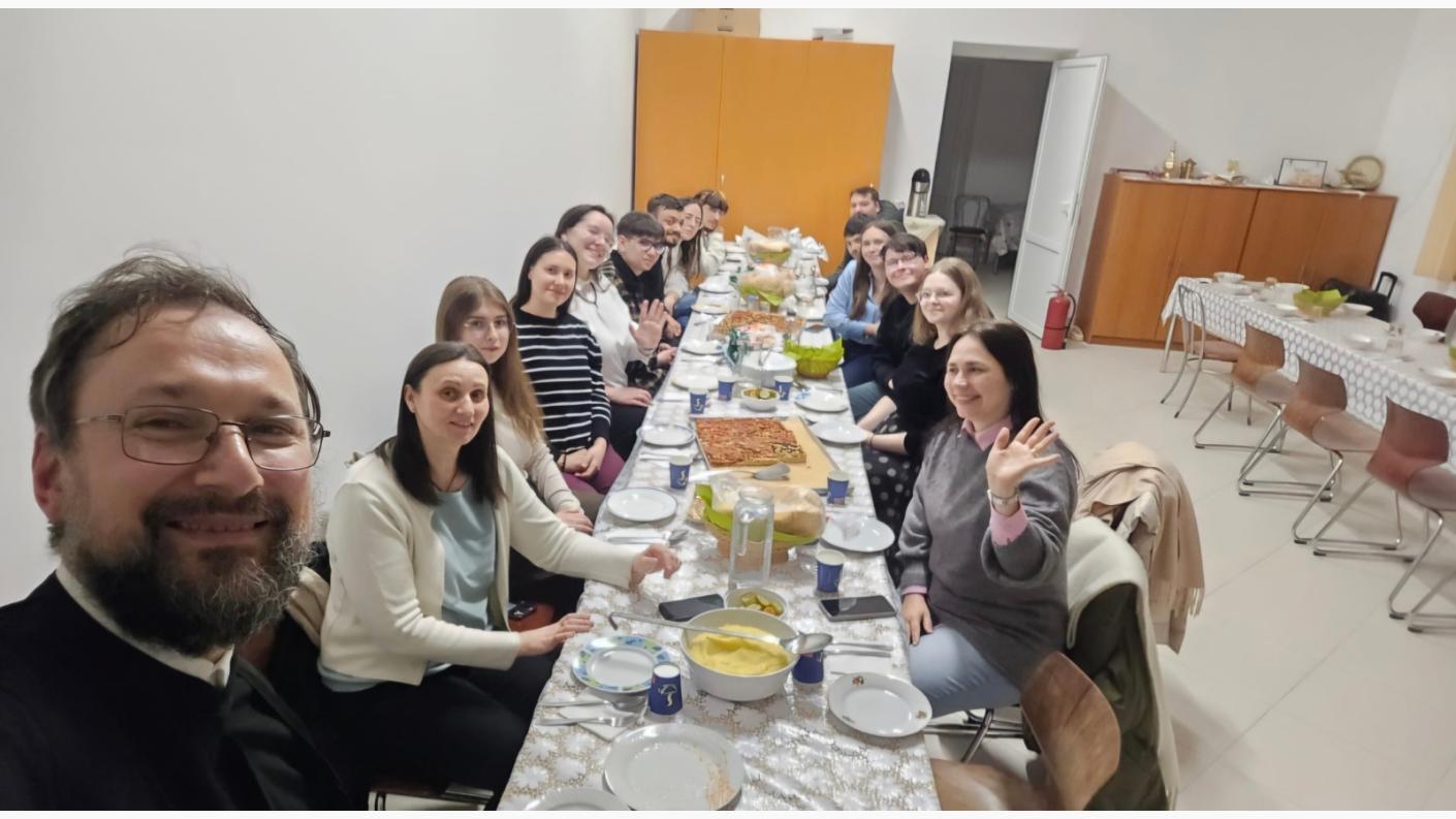 Ajunși în seara de vineri la Hârja și odată acomodați cu locația în care urmau să-și petreacă weekendul, studenții ieșeni au participat la o scurtă prezentare a logisticii și a activității din spatele rețelei de servicii sociale, medicale și educaționale, introducere realizată de Alina Postavariu, asistent social la centrele de copii ale asociației. Seara a continuat cu participarea la Sfânta Liturghie a Darurilor mai înainte sfințite, la capela complexului, unde aceștia s-au rugat împreună cu beneficiarii pentru liniștea, răbdarea și mângâierea durerilor celor bolnavi. Mai apoi, plini de nerăbdare pentru ziua următoare, tinerii au dedicat timp și socializării, bucurându-se de jocuri de societate și savurând clipele petrecute în comuniune.