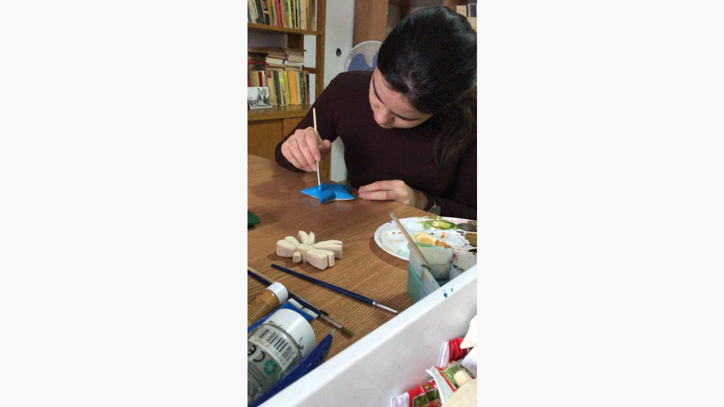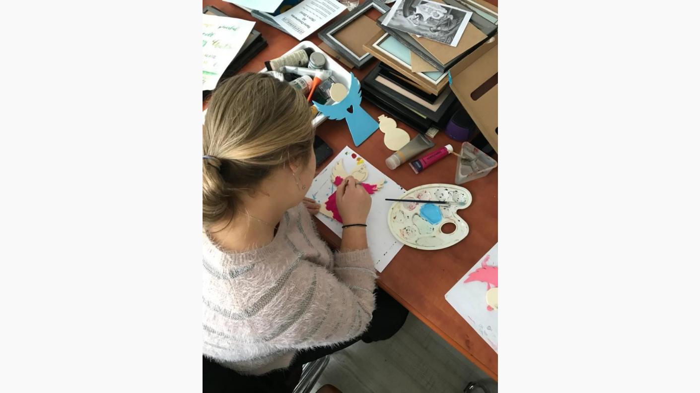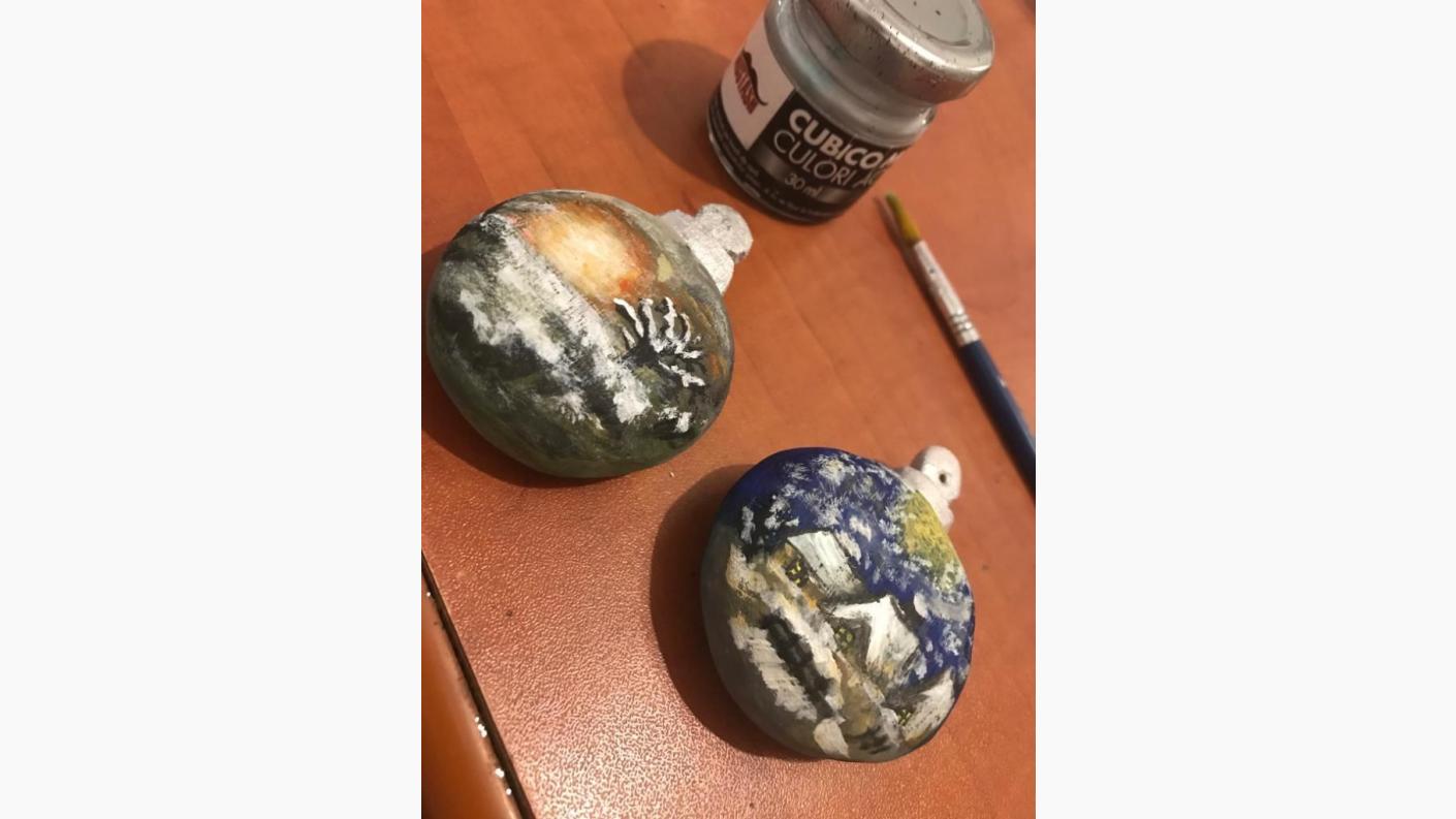 Sculptate de tânărul Ghennadie, omul de la Hârja care face minuni doar cu o singură mână, și pictate de studenți, globurile au prins viață. Îngerașii, steluțele, fulgii, globurile sunt gata să împodobească casele oamenilor din toată lumea, oferind un spirit de sărbătoare. La această imagine nu puteau să lipsească lumânările făcute de studenți: cu aromă de brad în combinație cu portocală, cu bucăți de lămâie și bomboane pe deasupra, sub forma unei brioșe apetisante, de diferite culori. Picturi pe sticlă, coronițe din brad, ornamentate, toate făcute cu dragoste și pricepere, toate acestea realizate în atelierele manufacturiale ale asociației de la Hârja.