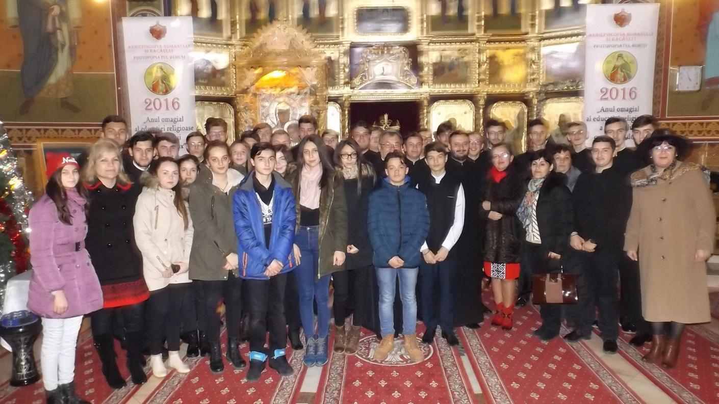 Miercuri, 21 decembrie 2016, cu binecuvântarea Înaltpreasfințitului Părinte Ioachim, corul elevilor de la Liceul Teologic „Episcop Melchisedec” Roman, coordonat de Părintele Director Ionuț Amărinii, la invitația Părintelui Protopop Vasile Cozma, a susținut un concert de colinde aducând mesajul Nașterii Mântuitorului Iisus Hristos.