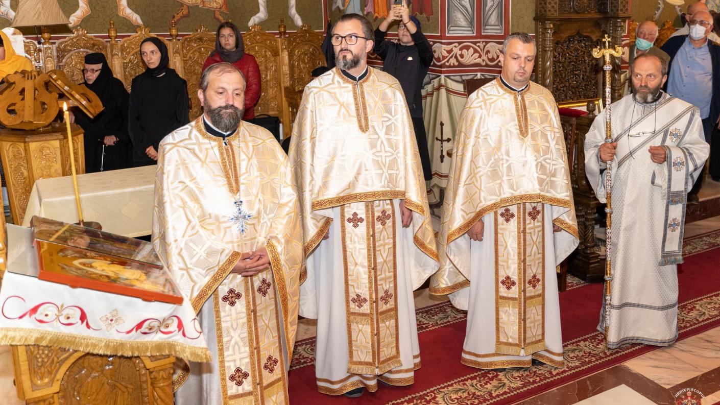 La primele ore ale dimineții, Arhipăstorul Ioachim a fost întâmpinat de către PC Părinte Arhimandrit Andrei Ioniță, exarh cultural al Centrului eparhial de la Roman, alături de maica stareță, stavrofora Teoctista Ungureanu, de obștea monahală, de părinți slujitori, de diaconi și de fii duhovnicești.