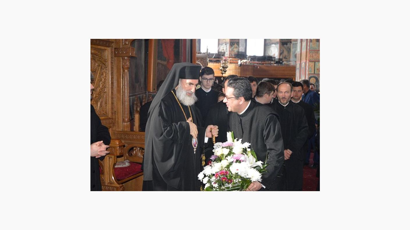 În ziua de prăznuire a Sfântului Sfințit Mc. Marcu, episcopul Aretuselor, miercuri, 29 martie, preoți, credincioși din cuprinsul Eparhiei Romanului și Bacăului, reprezentanți ai autorităților locale și județene din Neamț și Bacău, au participat la Sfânta Liturghie a Darurilor mai înainte sfințite săvârșită în catedrala ”Sf. Cuv. Parascheva” din Roman. În cadrul slujbei, răspunsurile la strană au fost date de corala „Laudamus” a Liceului ”Episcop Melchisedec” din Roman. Cei prezenți s-au rugat Bunului Dumnezeu, mulțumind pentru darurile revărsate asupra acestei eparhii și a Înaltpreasfințitului Părinte Arhiepiscop Ioachim, la ceas de bucurie duhovnicească, această zi constituind aniversarea zilei de naștere a ierarhului. După Dumnezeiasca Liturghie, cei prezenți au oferit flori Înaltpreasfinției Sale, în semn de recunoștință și apreciere pentru activitatea pe care de aproape două decenii o desfășoară în această eparhie, atât în plan pastoral, cât și social-filantropic și cultural. Apoi, părintele arhimandrit Pimen Costea, vicar administrativ, a evidențiat într-o concisă și emoționantă prezentare dăruirea și starea de jertfă a ÎPS Sale, de-a lungul celor 17 ani de arhierie. ”Înaltpreasfinția Voastră vă mulțumim pentru dragostea, răbdarea și înțelepciunea pe care ni le-ați împărtășit de-a lungul acestor ani. Din prima zi ne-ați fost model de slujire și implicare în viața Bisericii. Vă suntem recunoscători pentru tot ceea ce faceți pentru cei pe care îi păstoriți, clerici și mireni”, a spus vicarul administrativ al Arhiepiscopiei Romanului și Bacăului. La rândul său, cel de-al 77 ierarh al Eparhiei din inima Moldovei a rostit un cuvânt de mulțumire pentru toți cei care i-au fost și îi sunt alături în frumoasa, dar dificila misiune. ”Ziua aniversară este o zi a pomenirii părinților, duhovnicilor, dascălilor și profesorilor care ne-au învățat să devenim asemenea unui izvor din care se adapă toți cei ce doresc și caută mântuirea. Dar această zi trebuie să fie pentru fiecare dintre noi, un timp al bilanțului. În aceste momente încerci să pui în balanță ceea ce ai făcut de-a lungul vieții și dacă ai mers în direcția cea bună. Suntem conștienți de faptul că analiza faptelor și a împlinirilor noastre o știe Dumnezeu și, când ne vom întâlni cu El, față către față, nădăjduim să Se recunoască în dăruirea noastră jertfelnică pentru viața în Hristos”, a afirmat, printre altele, Înaltpreasfinția Sa. Totodată, chiriarhul a făcut referire și la cei 76 de ierarhi care au slujit, în istoria de peste 600 de ani, pe scaunul vlădicesc de la Roman, personalități ale vieții bisericești și culturale. ”În această Eparhie au fost ierarhi sfinți, ierarhi remarcabili, care au avut conștiința sfințeniei, a vieții sacerdotale, marcând timpul lor, viața socială, cât și cea misionară sau cea pastoral-misionară. Fiecare a făcut ceva în această eparhie. Personal, nu știu cât am împlinit, frățiile voastră și istoria veți aprecia activitatea pe care am săvârșit-o împreună spre slava lui Dumnezeu și a Bisericii Sale”, a mai spus Înaltpresfințitul Ioachim. ”Vă mulțumesc tuturor, colaboratorilor mei și tuturor celor care ați venit să ne înconjurați cu dragoste. Să rămânem în dragostea lui Hristos pe calea Evangheliei Sale”, a urat ierarhul tuturor celor prezenți în catedrala din Roman.