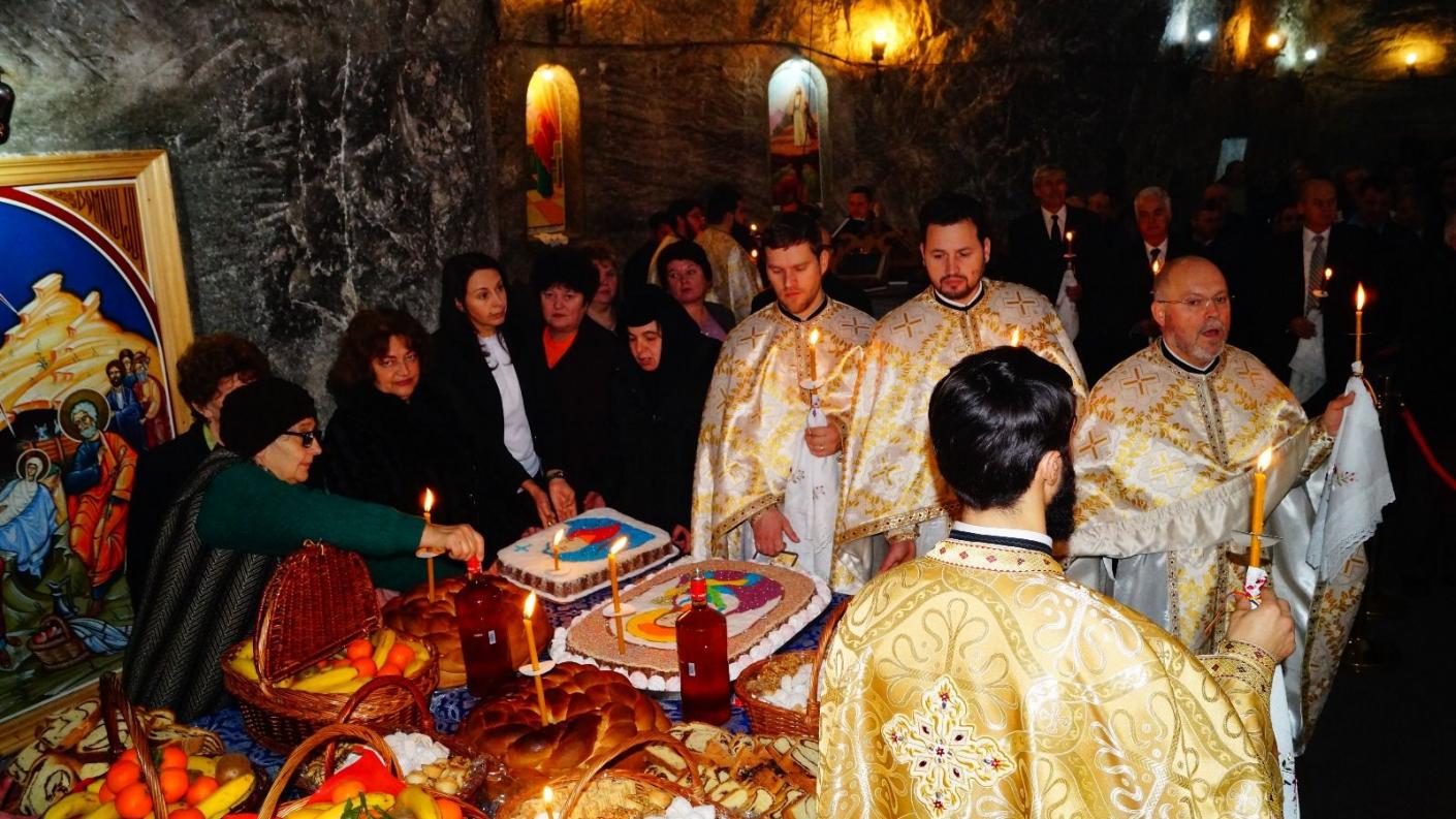 Tot în timpul Sfintei Liturghii au fost pomeniți eroii neamului nostru românesc, precum și minerii care au adormit în Domnul în perioada de când s-a sculptat în sare acest locaș și până astăzi.