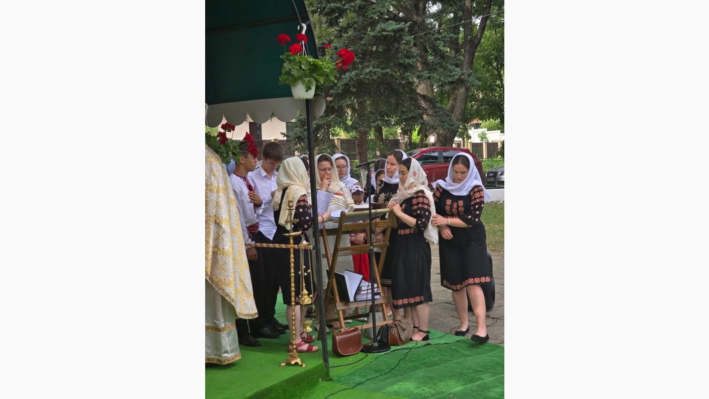 Răspunsurile liturgice au fost oferite de corul psaltic Filomelos, alcătuit din tineri iubitori de Dumnezeu și de muzică religioasă, care ucenicesc și aprofundează tainele muzicii psaltice la strana bisericii voievodale, sub îndrumarea doamnei preotese Paula Cautiș. Aceștia au emoționat inimile celor prezenți și printr-un recital de cântece și poeme patriotice.