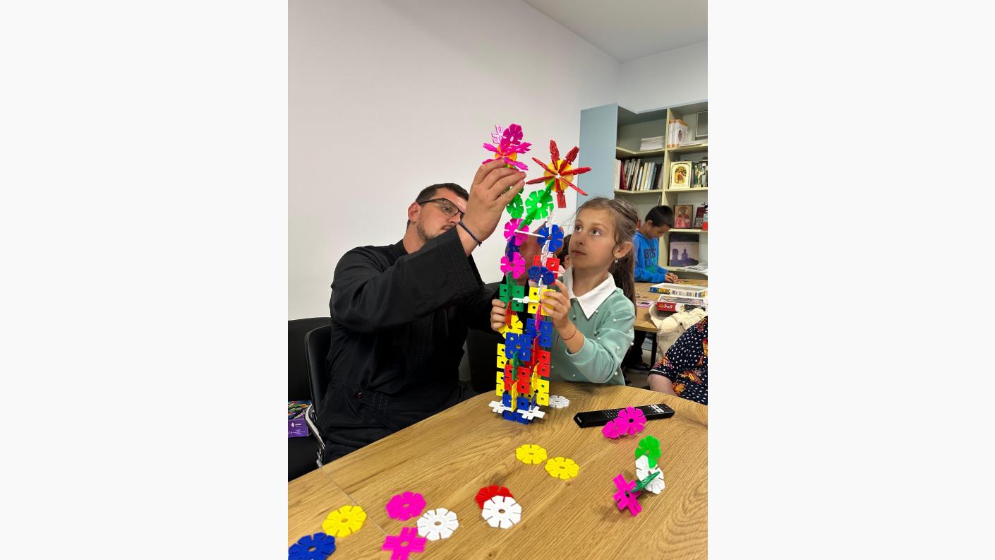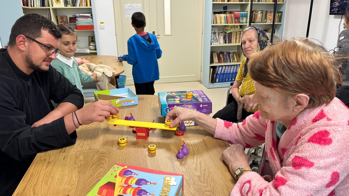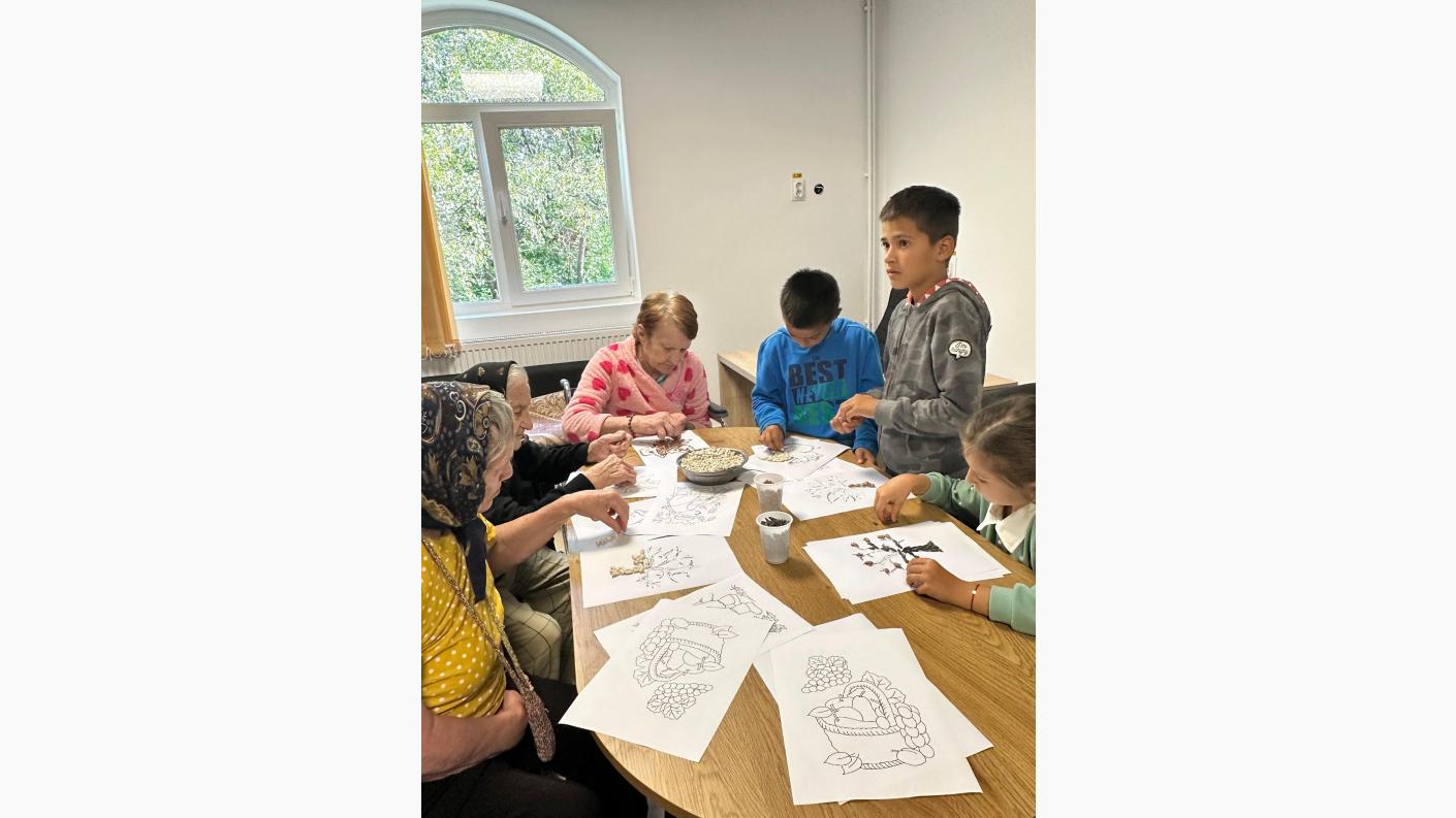 În continuarea sărbătorii, în biblioteca centrului s-au desfășurat ateliere intergeneraționale, unde copiii și vârstnicii au creat împreună obiecte handmade (machetă cu biserica ortodoxă din hârtie în mod 3D; desene reliefate cu semințe și fasole de diferite tipuri de culori; desene tomnatice; animăluțe din legume), au jucat jocuri de societate și au împărtășit povești de viață, consolidând astfel puntea dintre generații.