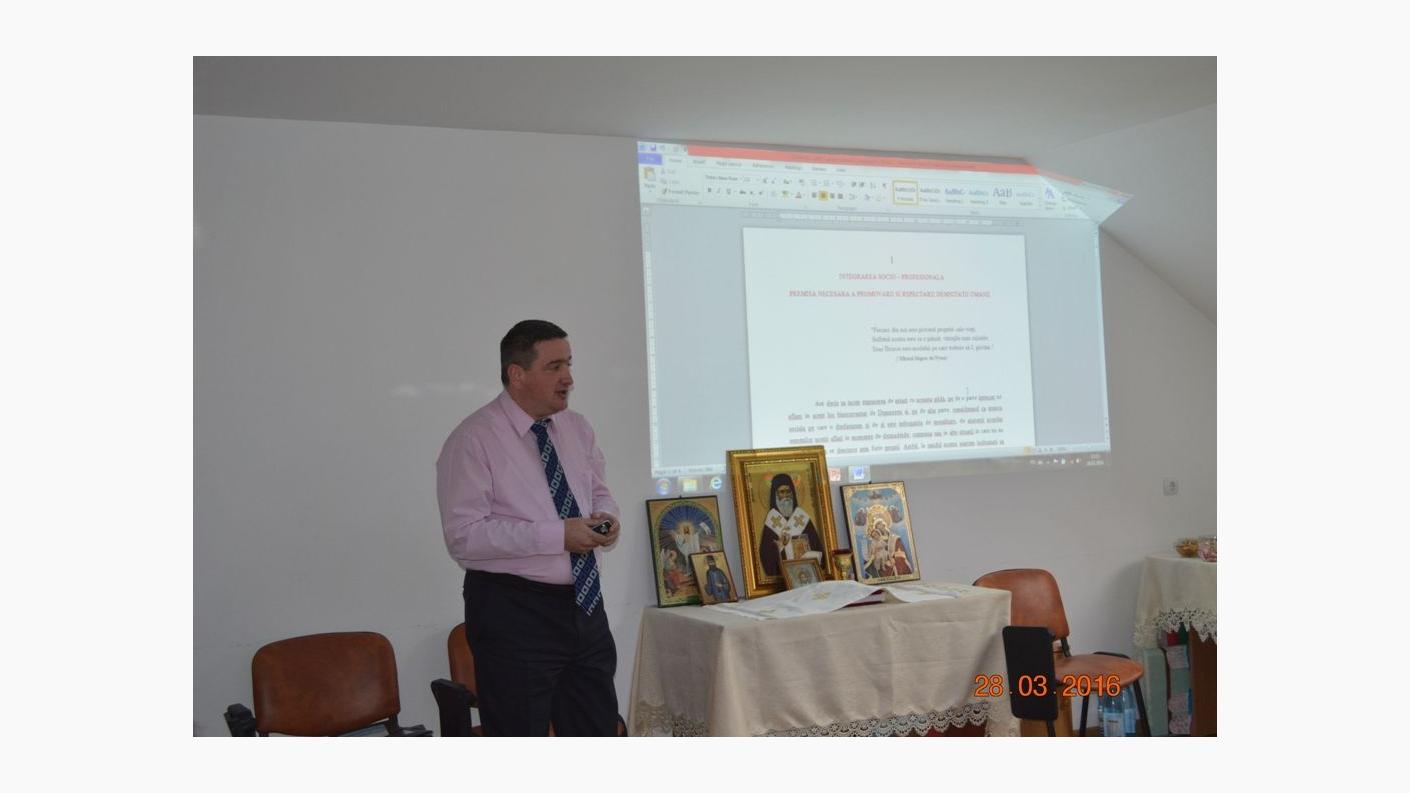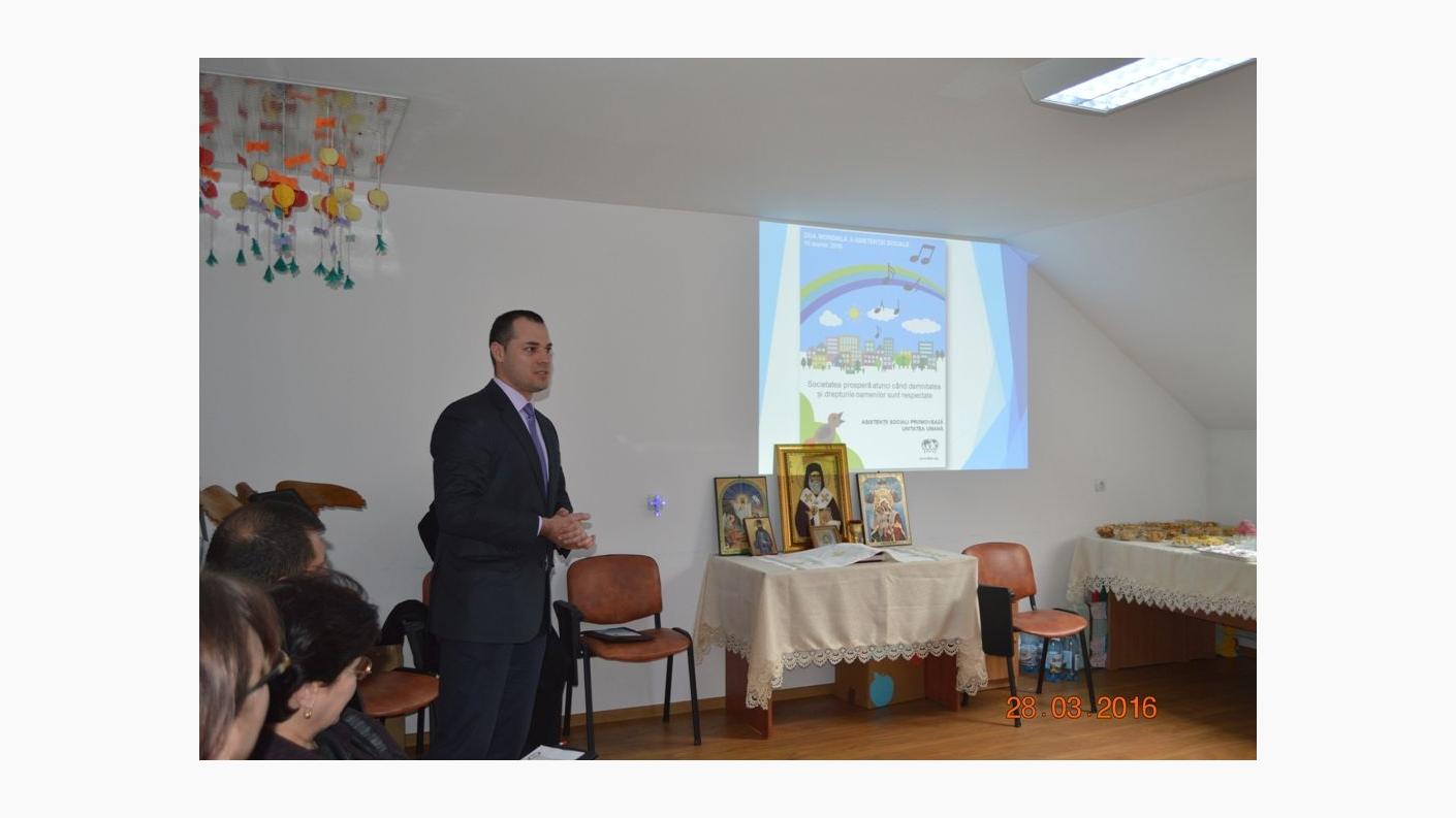 Au urmat șase prezentări power –point ale asistenților sociali de la instituțiile publice și private din județul Bacău, acestea fiind precedate de intervenția pr. Ilarion Mâță, cu titlul Asistența persoanelor vârstnice. Teorii sociale întrebuințate în abordarea holistă a bătrânului.