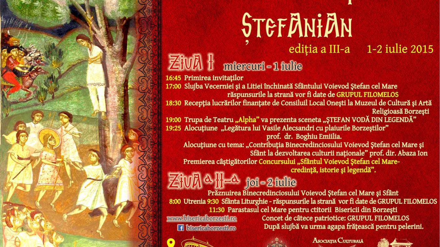 Biserica voievodală din Borzești organizează în perioada 1-2 iulie 2015 „Zilele Betleemului Ștefanian”, Ediţia a III-a, eveniment închinat Dreptcredinciosului Voievod Ștefan cel Mare și Sfânt care s-a născut și a copilărit la Borzești.