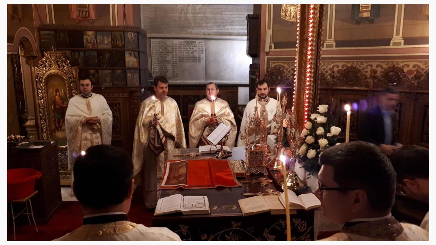 Părintele paroh Costică Busuioc, împreună cu părinții slujitori ai acestei catedrale istorice, Ciprian Olteanu și Eduard Cozma, au primit vizita altor preoţi, slujind împreună Vecernia unită cu Litia.