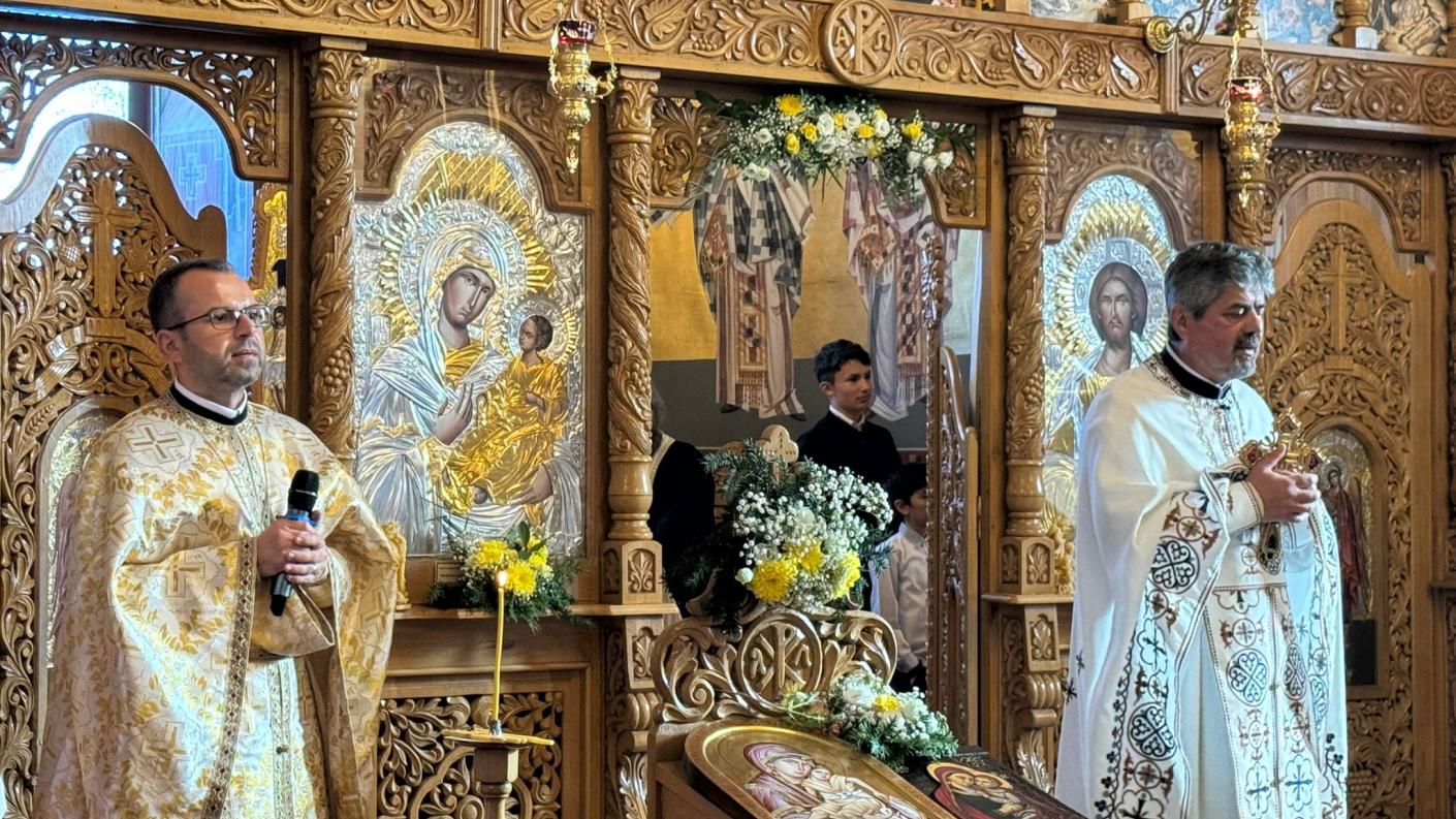 Prezența Coralei „Pro Musica” din Onești a oferit credincioșilor bucurie prin răspunsurile oferite la Sfânta Liturghie. Cei 18 membri coordonați de domnul profesor Munteanu Iulian au impresionat prin blândețe și au unit sufletele într-un corp comun rugător.