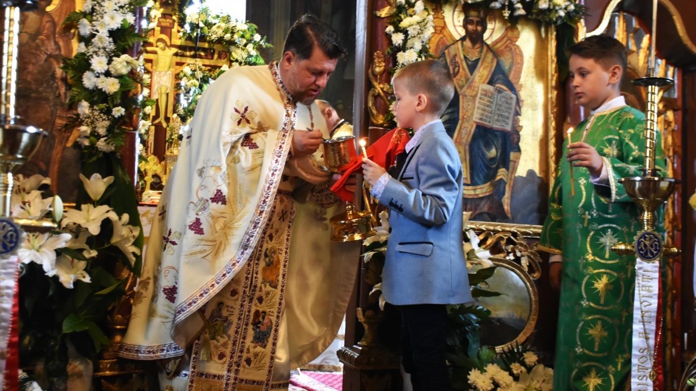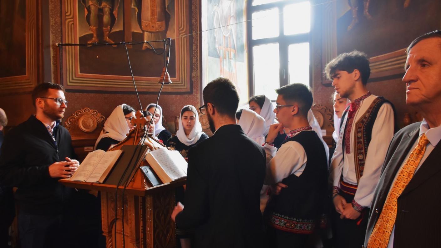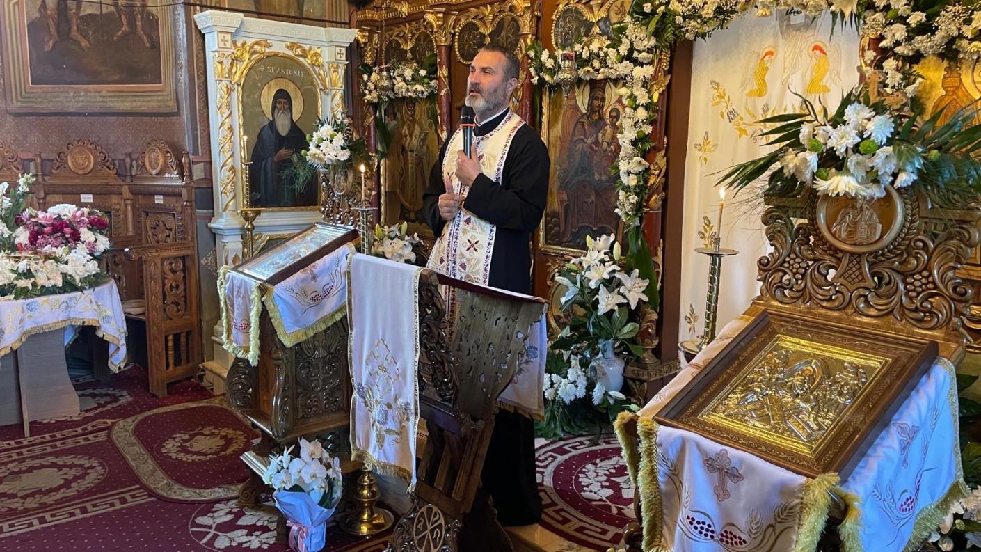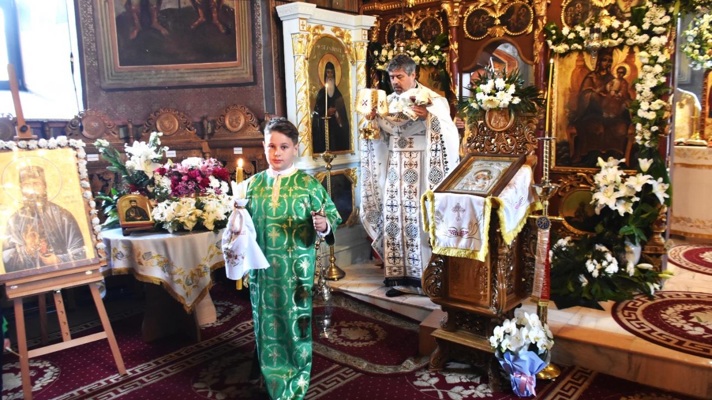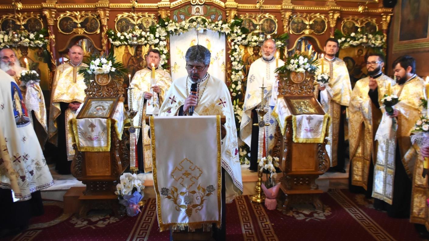 Duminică, 12 mai, după slujba Utreniei si a Acatistului Sfântului Mare Mucenic Gheorghe, a urmat Sfânta și Dumnezeiasca Liturghie săvârșită de un sobor de preoți, sub protia părintelui protopop Costel Mareș, răspunsurile la strană fiind oferite de tinerii din cadrul grupului psaltic Filomelos.