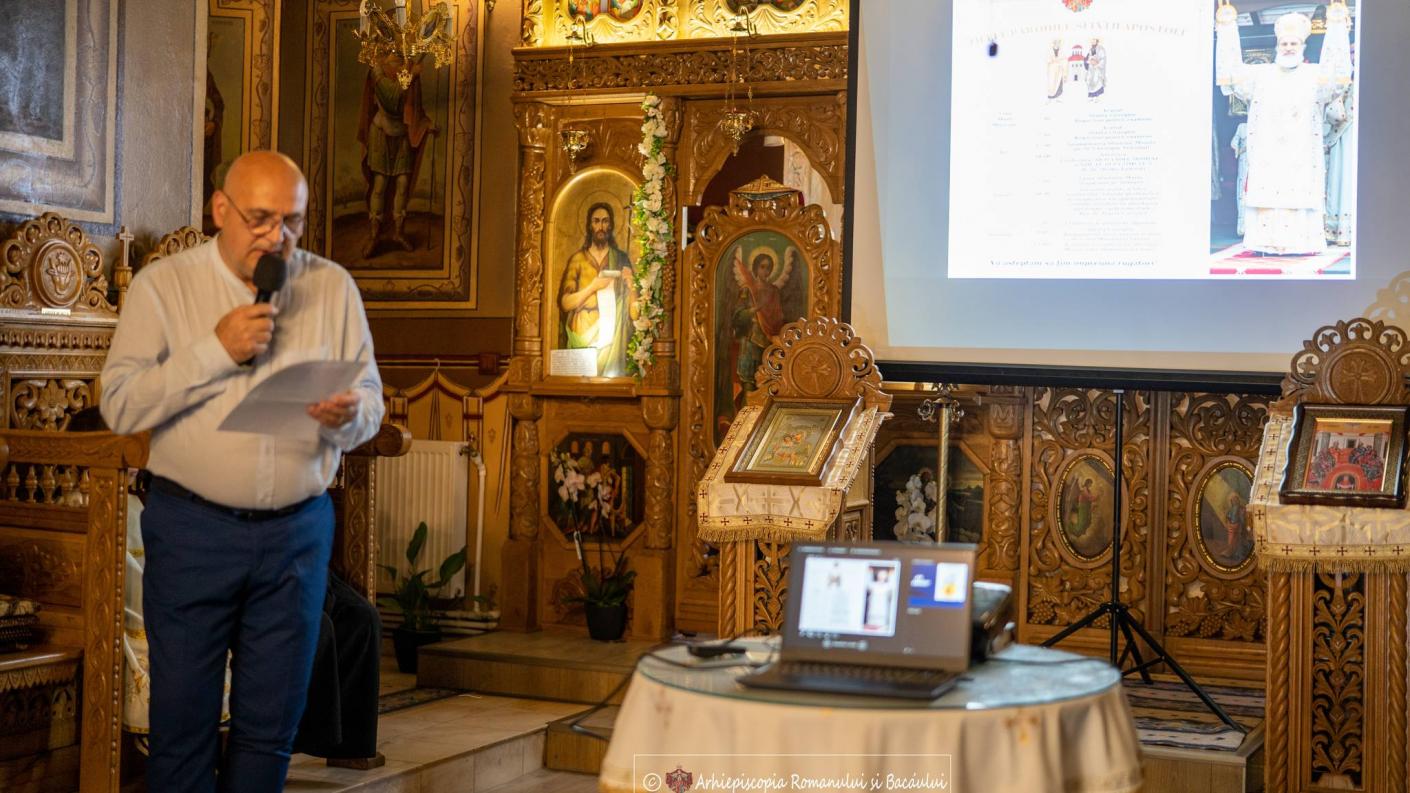 După rostirea Acatistului ”Sfinților Apostoli Petru și Pavel” de către un numeros sobor alcătuit din preoți care au răspuns invitației slujitorilor bisericii din urbea băcăuană, pr. Constantin Abageru și pr. Adrian Alexandrescu, buchetul de evenimente al zilei a continuat cu prelegerea ”Quo Vadis, homine?”, susținută de către domnul Tudoran Ovidiu, medic specialist ORL.