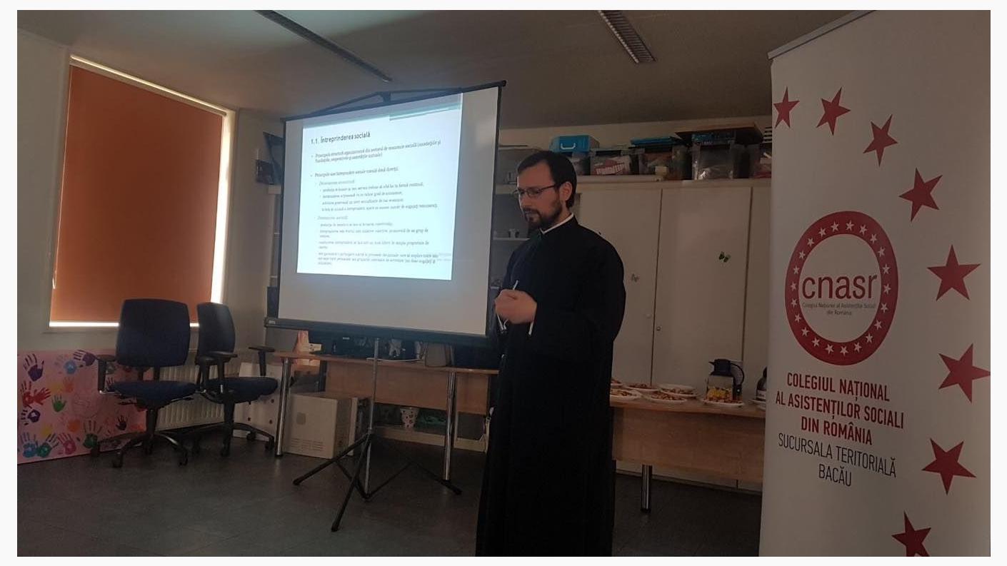 După prezentarea participanților pe tema workshop-ului, de către Marian Vătămănescu, Șef Complex - Direcția Generală de Asistență Socială și Protecția Copilului Bacău, Pr. Ilarion Mâță, președintele Asociației „Sf. Voievod Ștefan cel Mare – Hârja”, a vorbit despre „Sustenabilitatea serviciilor sociale. Studiu aplicat pentru centrele rezidențiale pentru persoane vârstnice – regiunea Nord-Est”, Pr. Ilarion Mâță fiind câștigătorul Premiului pentru asistentul social din domeniul incluziunii sociale – economie socială, în cadrul Galei Naționale a Excelenței în Asistența Socială, 2018.