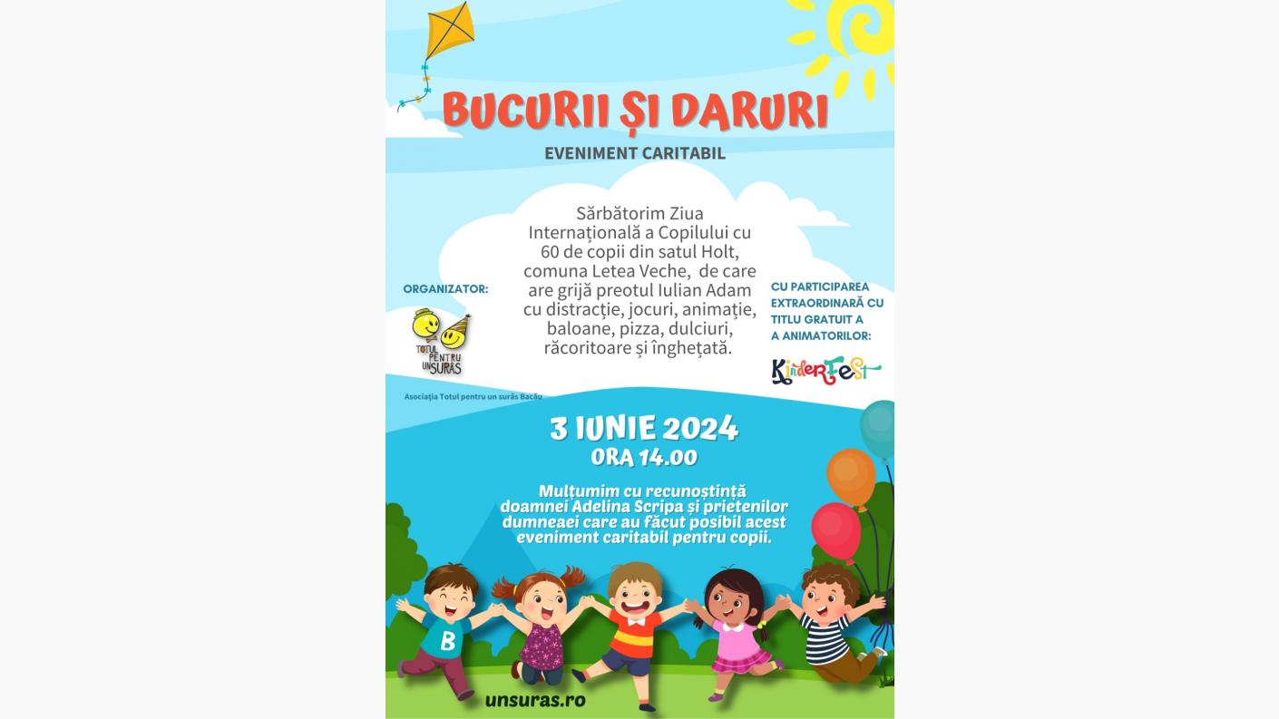 Cu ocazia Zilei Internaţionale a Copilului, având binecuvântarea Înaltpreasfinţitului Părinte Ioachim, Arhiepiscopul Romanului şi Bacăului, copiii Parohiei „Sfinţii Arhangheli Mihail şi Gavriil” din satul Holt, com. Letea Veche, Protopopiatul Bacău, au avut parte de mai multe surprize, pregătite special pentru ziua lor.