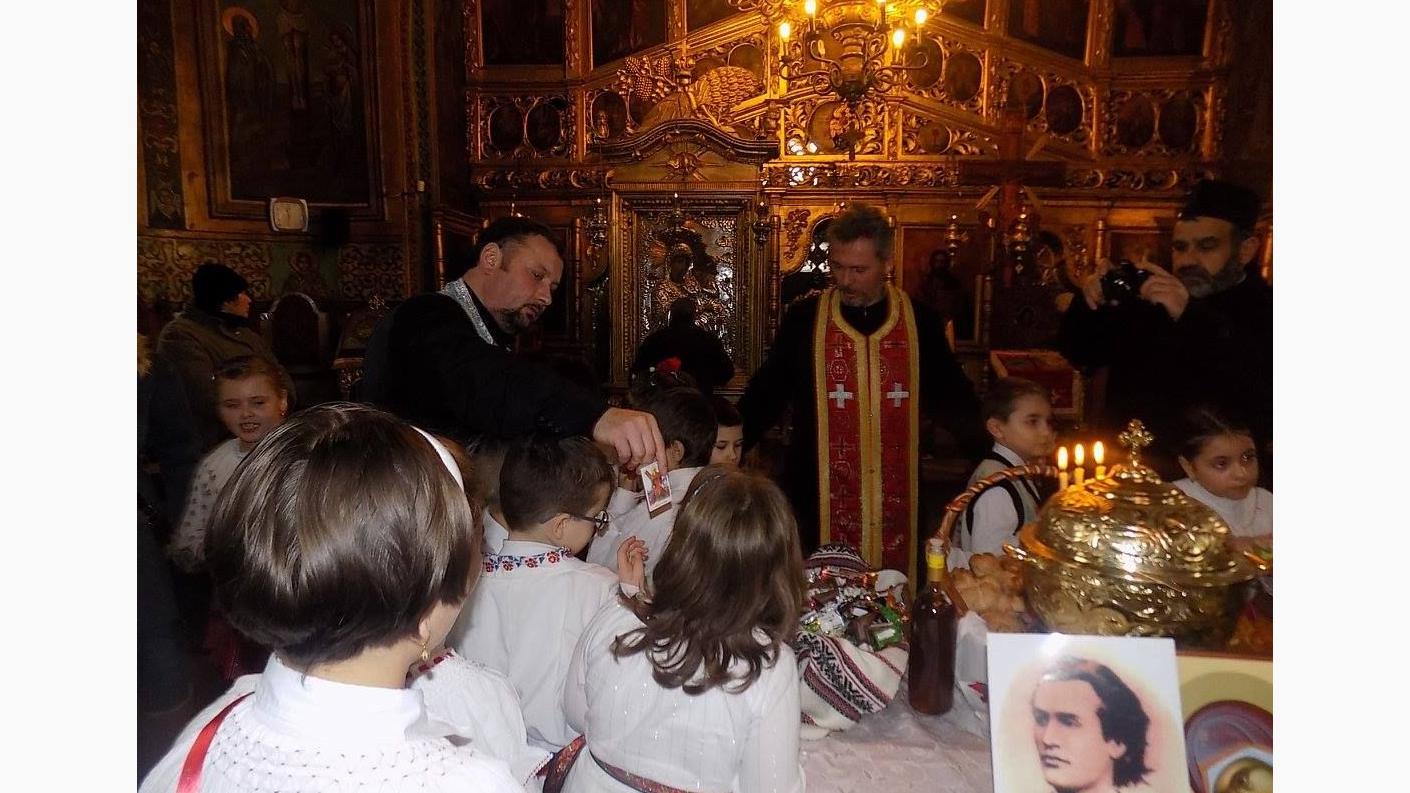 Alături de elevii și cadrele didactice ale școlii "Mihai Eminescu" s-a aflat și directorul școlii prof. Oana Mălinici. După încheierea slujbei de pomenire, elevii prezenți, coordonați de înv. Ana Nona Pâslaru și prof. de religie Elena Sandu, au susținut un recital de cântece și poezii din creația eminesciană, iar la final au primit din partea organizatorilor colăcei, dulciuri și iconițe. Atât cadrele didactice, cât și elevii au fost felicități și încurajați pentru a promova cu aceeași pasiune și de acum înainte, în fiecare zi, adevăratele valori ale culturii românești.