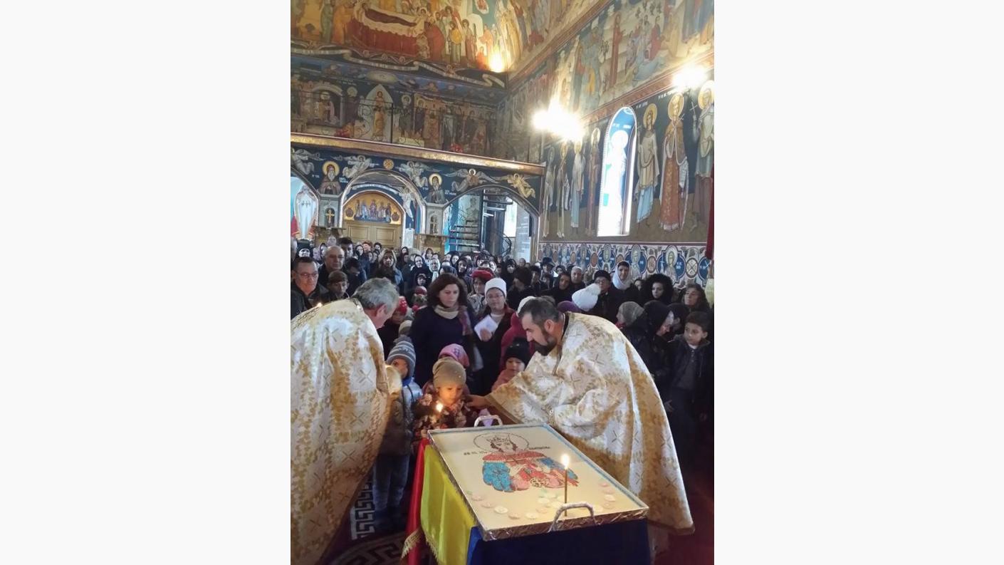 În fața Sfântului Altar, s-au adunat, la momentul liturgic potrivit, copilaşi din parohie care, după ce au rostit Simbolul de credință şi rugăciunea Tatăl nostru, au primit Sfânta Împărtăşanie.