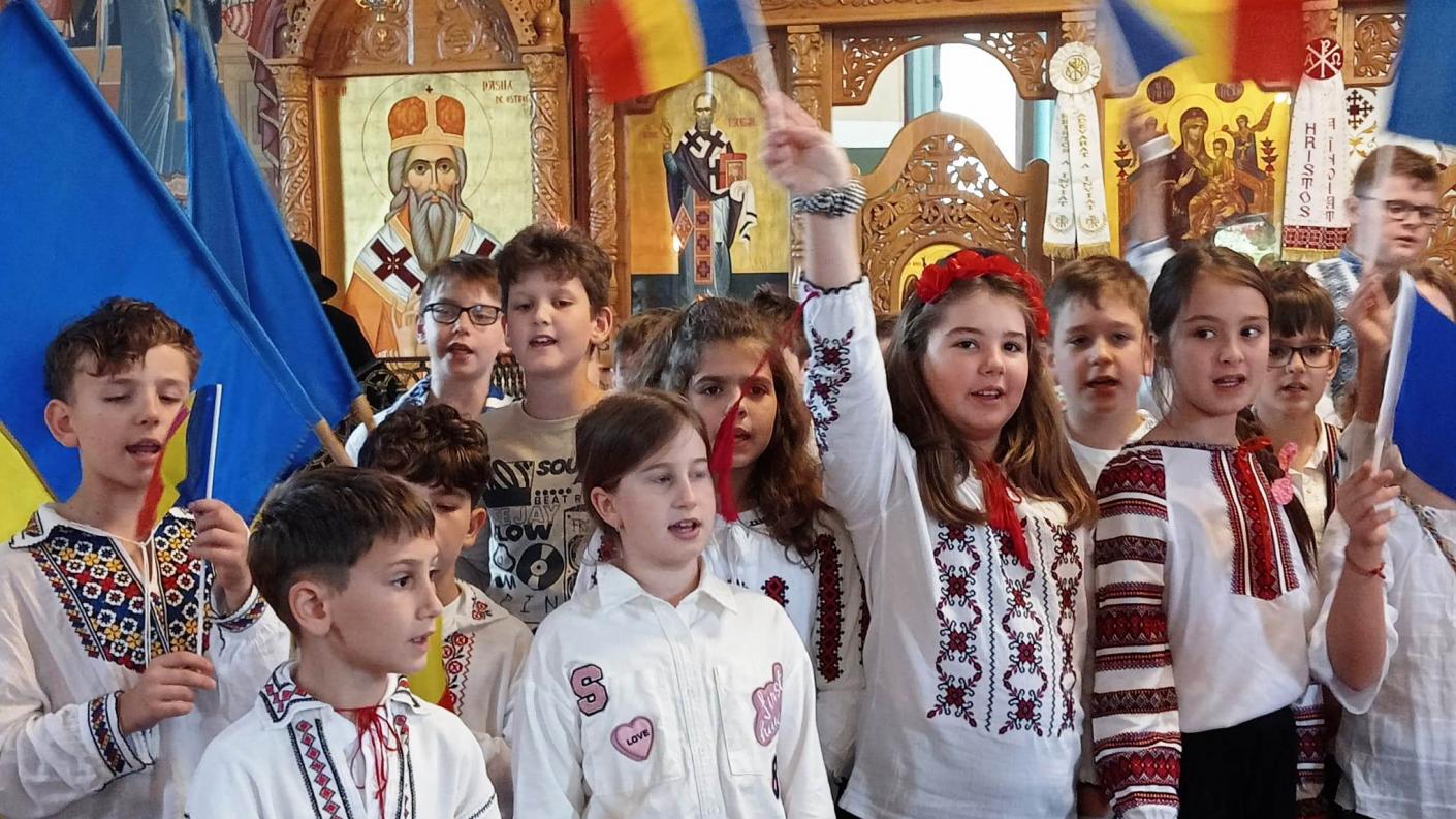 Un moment aparte l-a constituit participarea copiilor de la Centrul de zi parohial, elevi ai Școlii Gimnaziale „Mihai Drăgan”, coordonați de doamnele profesoare Mirela Cîrlan (prof. de Religie), Delia Costea (prof. învăţământ primar) și Nina Munteanu (prof. învăţământ primar). Cu steaguri tricolore în mâini, rugăciuni înălțate din suflet și cântece patriotice vibrante, aceștia au transformat Biserica şi curtea „Sfinţilor Trei Ierarhi” într-un simbol viu al iubirii de țară și al credinței strămoșești.